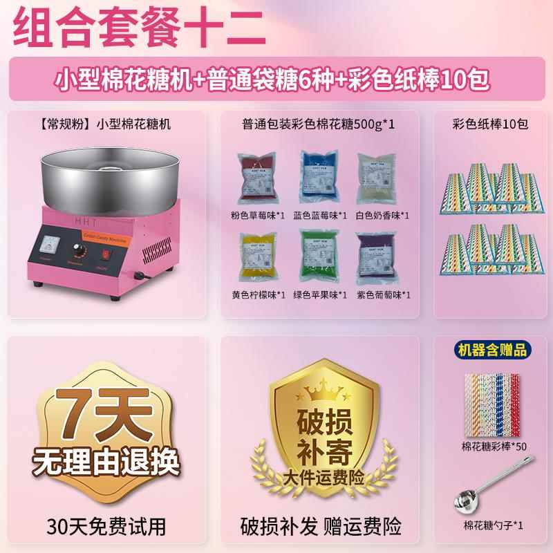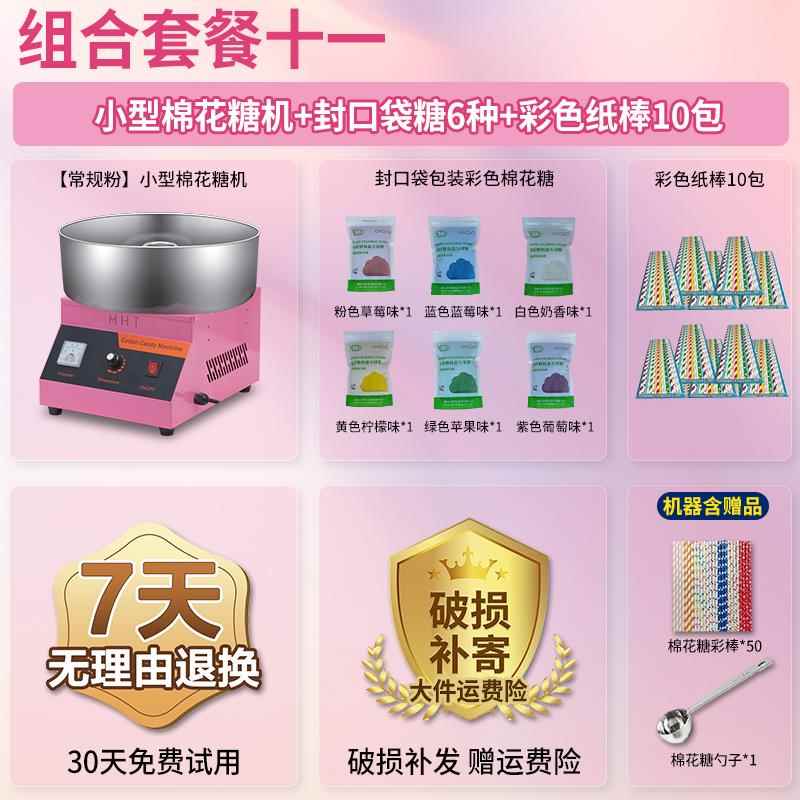 • (추천 패키지) 마시멜로 기계 + 루프 팝콘 기계 + 밀봉백 포장 설탕 6종/팩당 1000g + 색종이스틱 10팩/500스틱