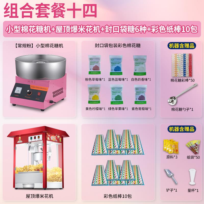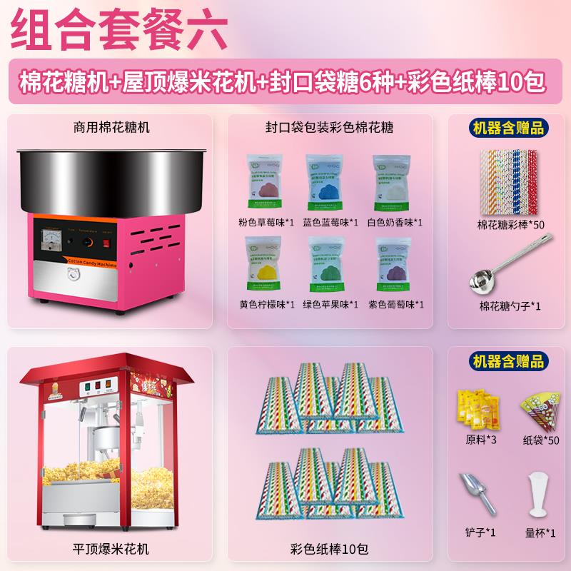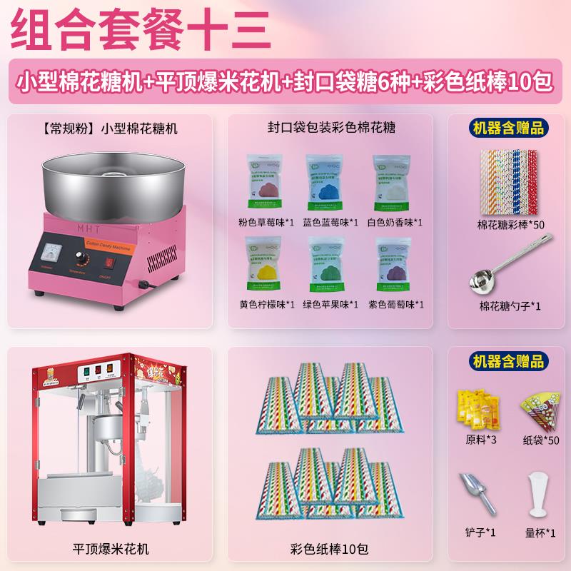 • (추천 패키지) 소형 마시멜로 기계 + 플랫탑 팝콘 기계 + 밀봉백 포장 설탕 6종/팩당 1000g + 색종이스틱 10팩/500스틱
