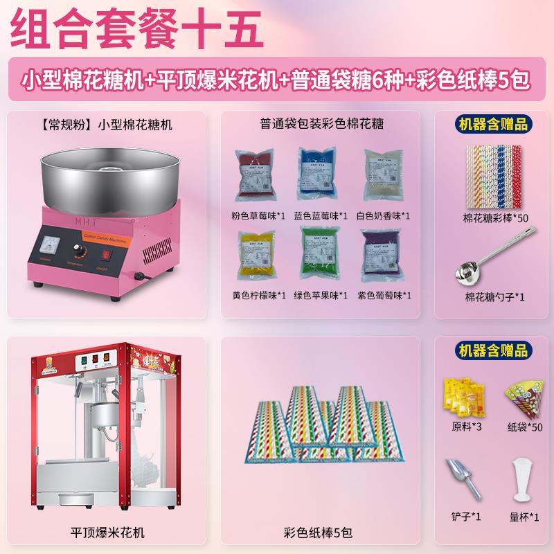 • (추천 패키지) 소형 마시멜로 기계 + 플랫탑 팝콘 기계 + 일반 봉지 포장 설탕 6종/팩당 500g + 색종이 스틱 5팩/250개