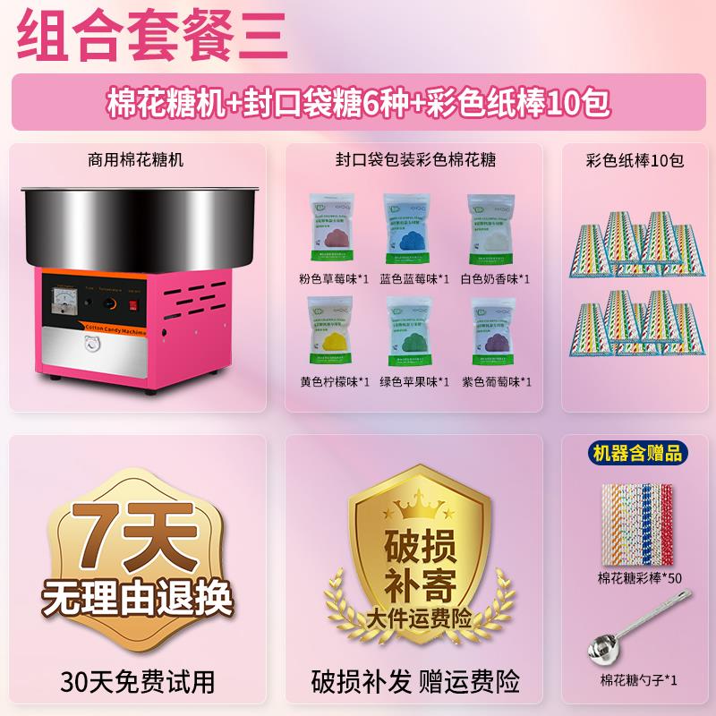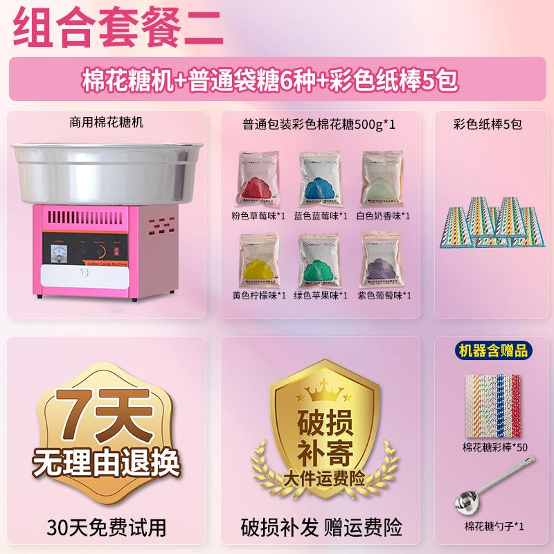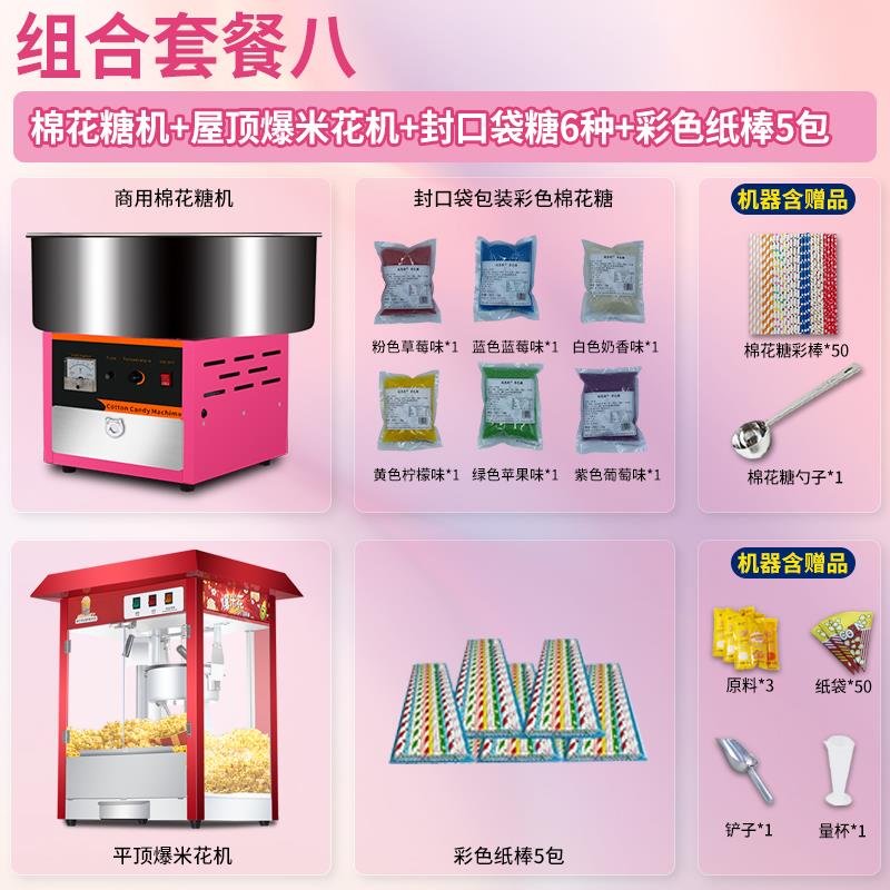 • (추천 패키지) 마시멜로 기계 + 플랫탑 팝콘 기계 + 밀봉백 포장 설탕 6종/팩당 1000g + 색종이스틱 5팩/250스틱