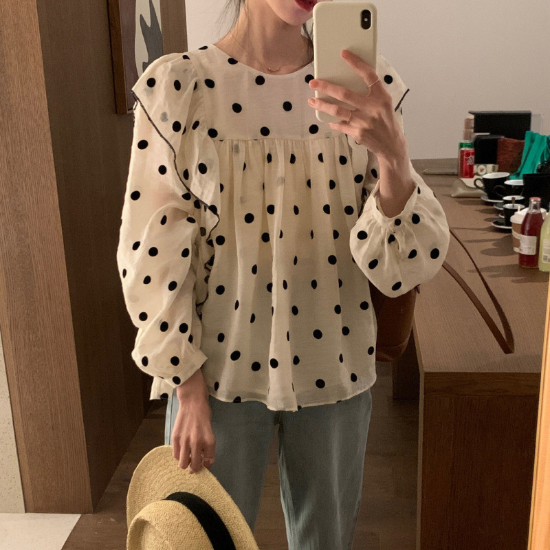 초가을 달콤하고 시크한 여성용 귀파장 도트무늬 셔츠 2025 아우터 디자인 니치 셔츠 긴팔스토어 가기