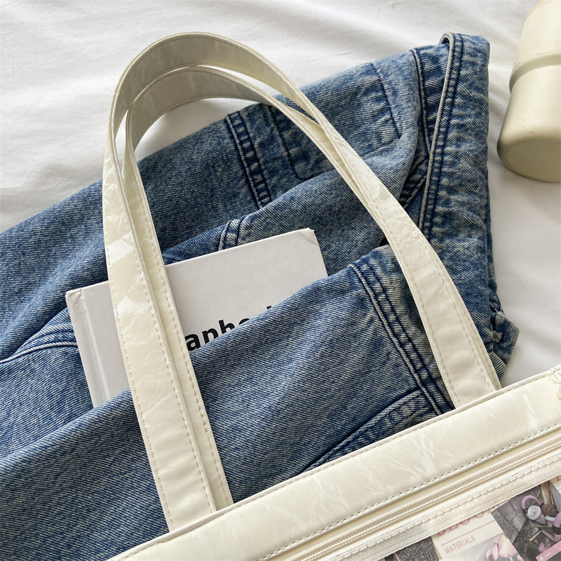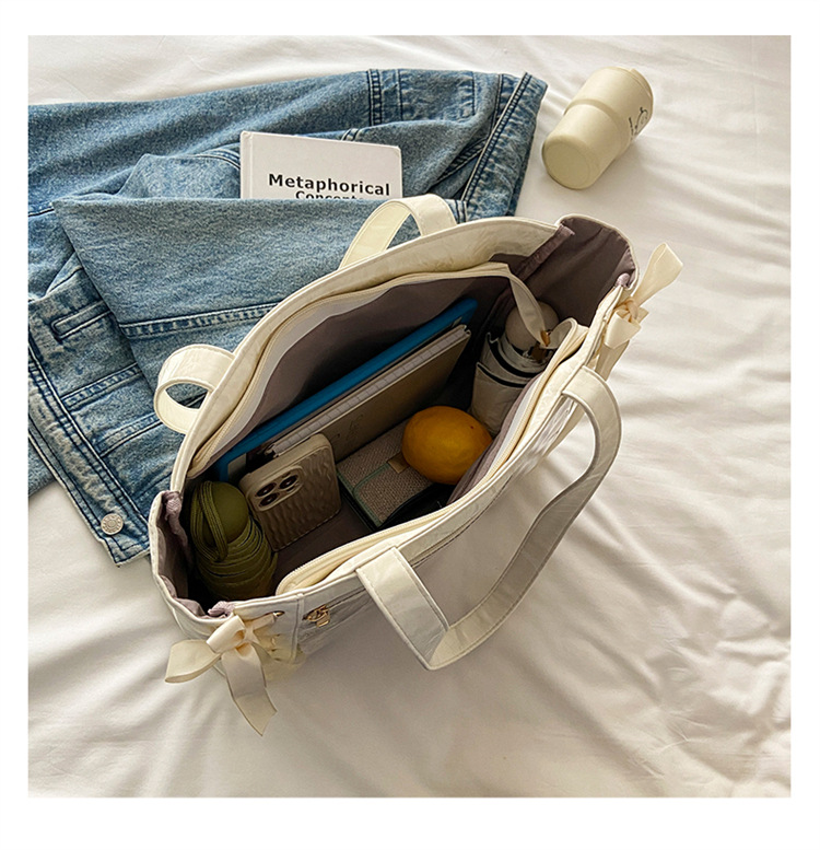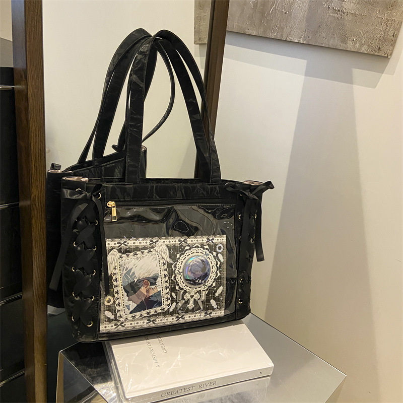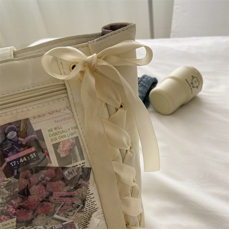대용량 여성 가방 리본 JK 달콤한 소녀풍 투명 대용량 토트백 여성 가방 공장 직영스토어 가기