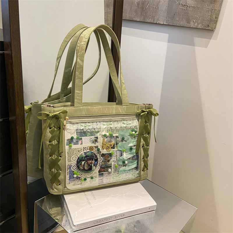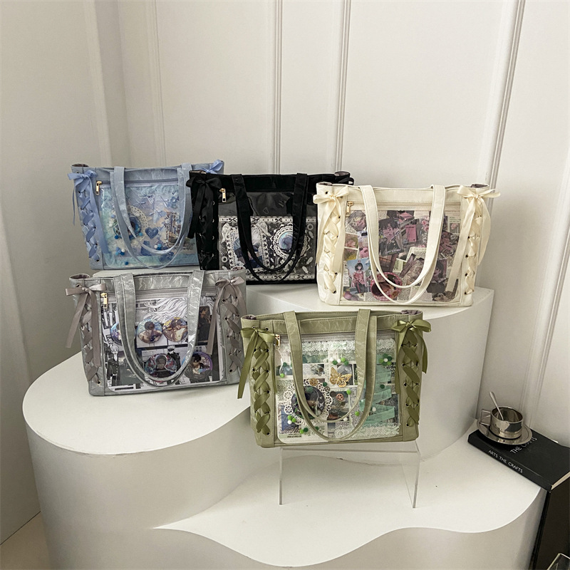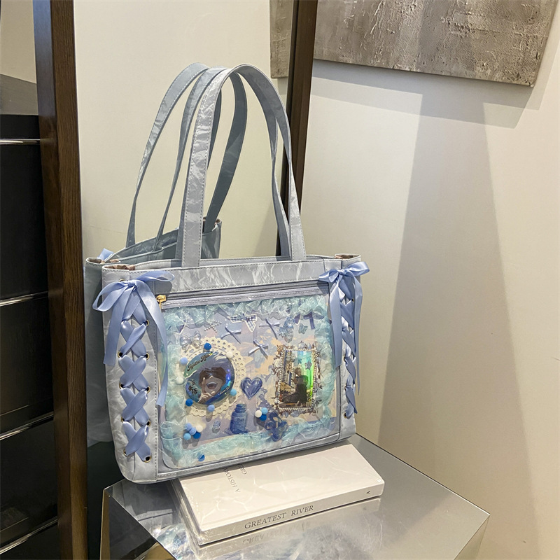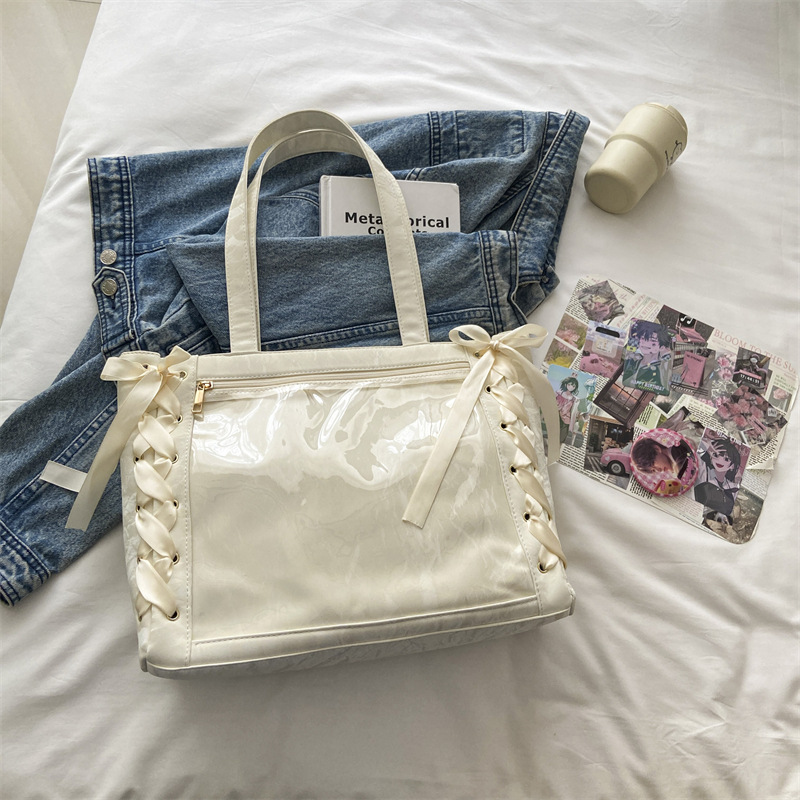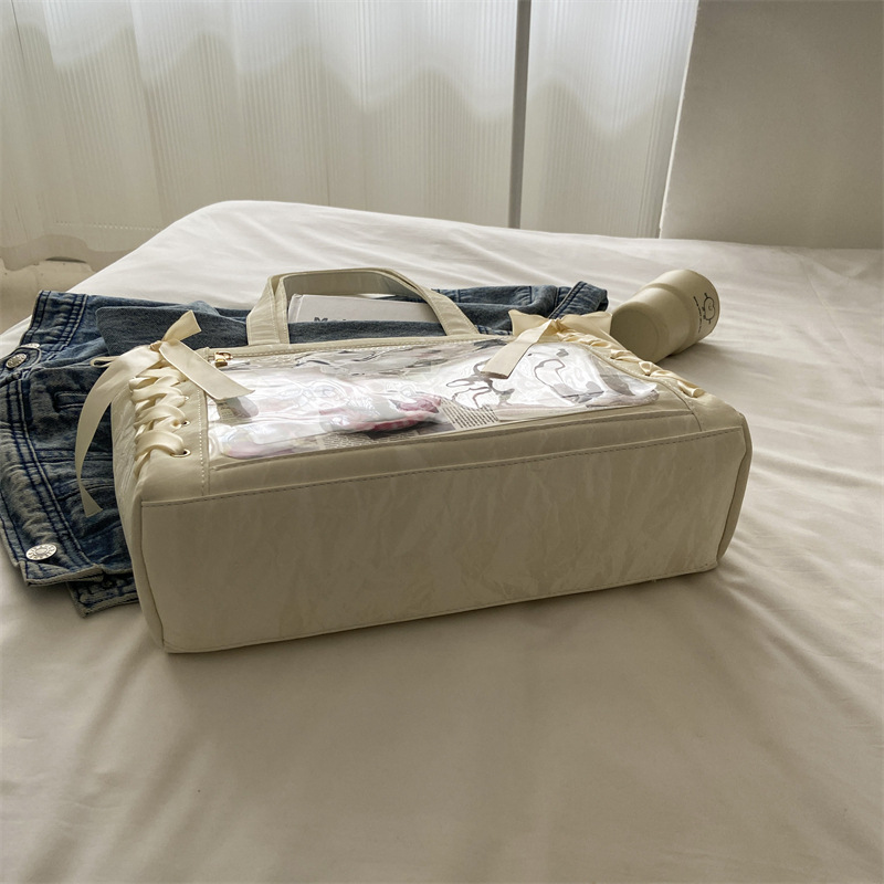 대용량 여성 가방 리본 JK 달콤한 소녀풍 투명 대용량 토트백 여성 가방 공장 직영