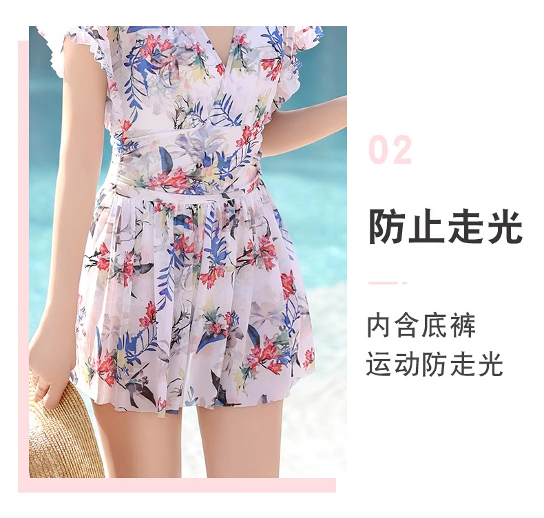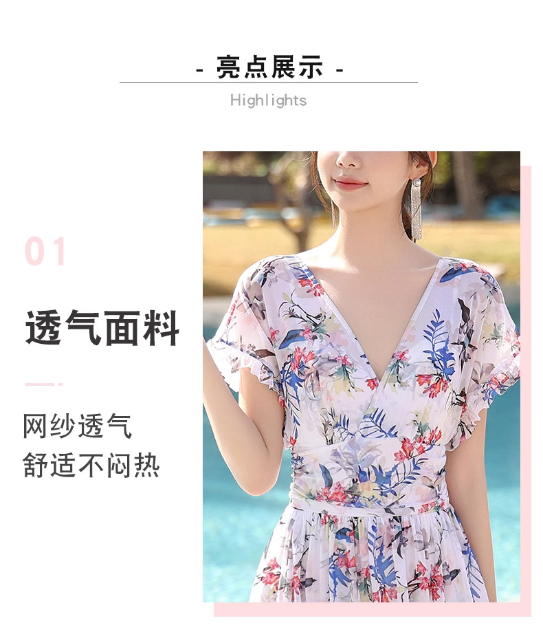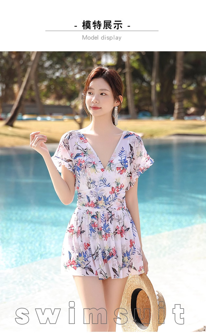 여성 수영복 플러스 사이즈 꽃무늬 INS 배 커버 슬리밍 요정 스타일 섹시한 브이넥 원피스 스커트 스타일 온천 수영복