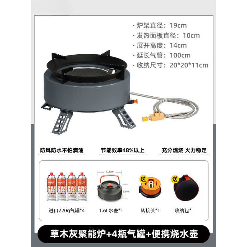 • [메인사진과 같은 스타일] 문락 그레이 에너지 집중형 난로 + 가스탱크 4개 + 휴대용 주전자.