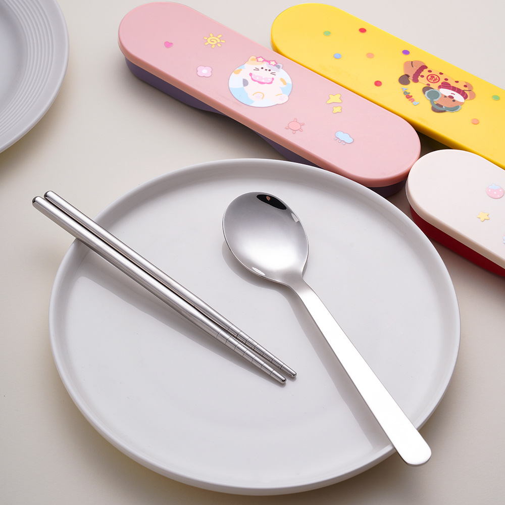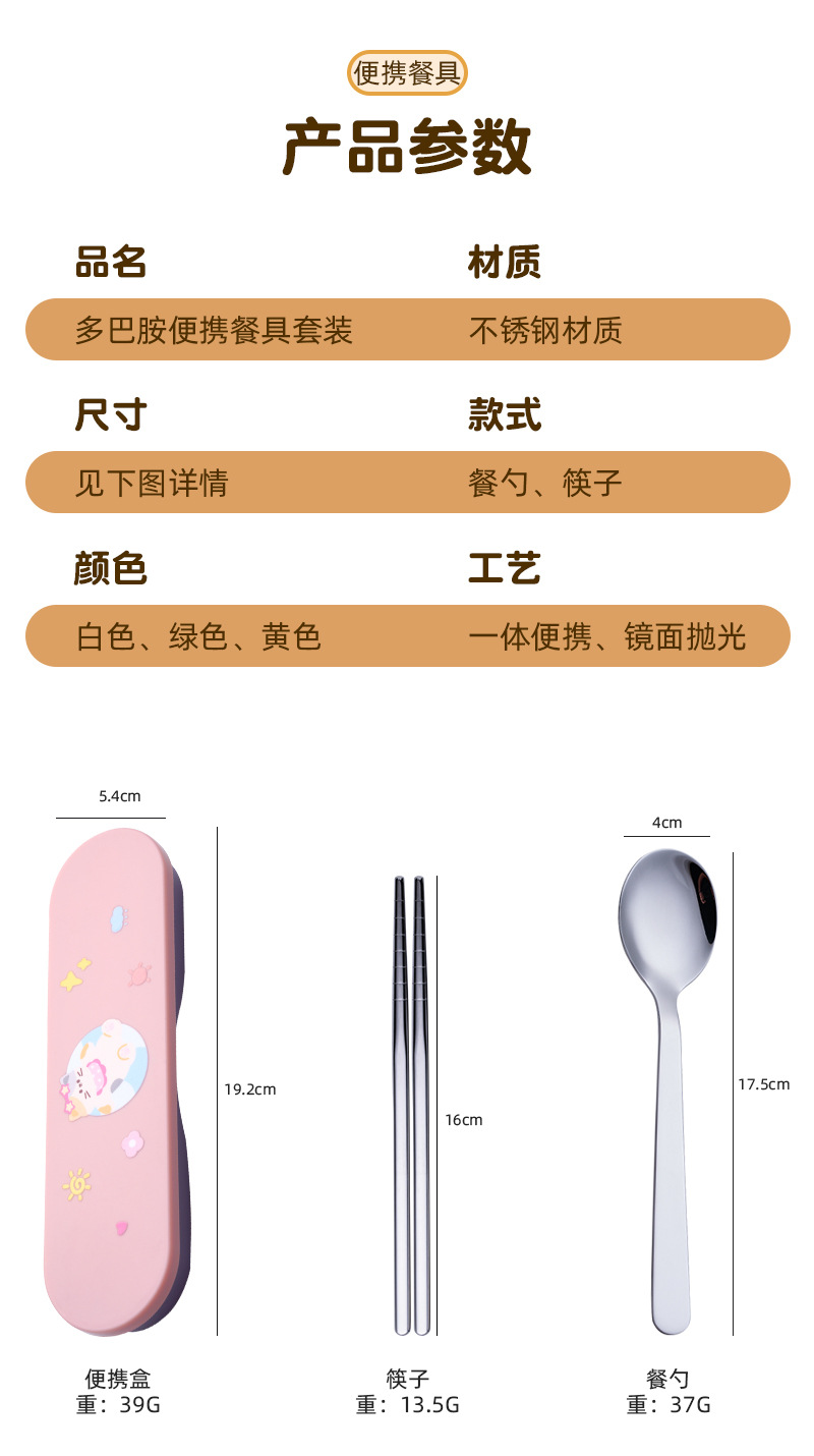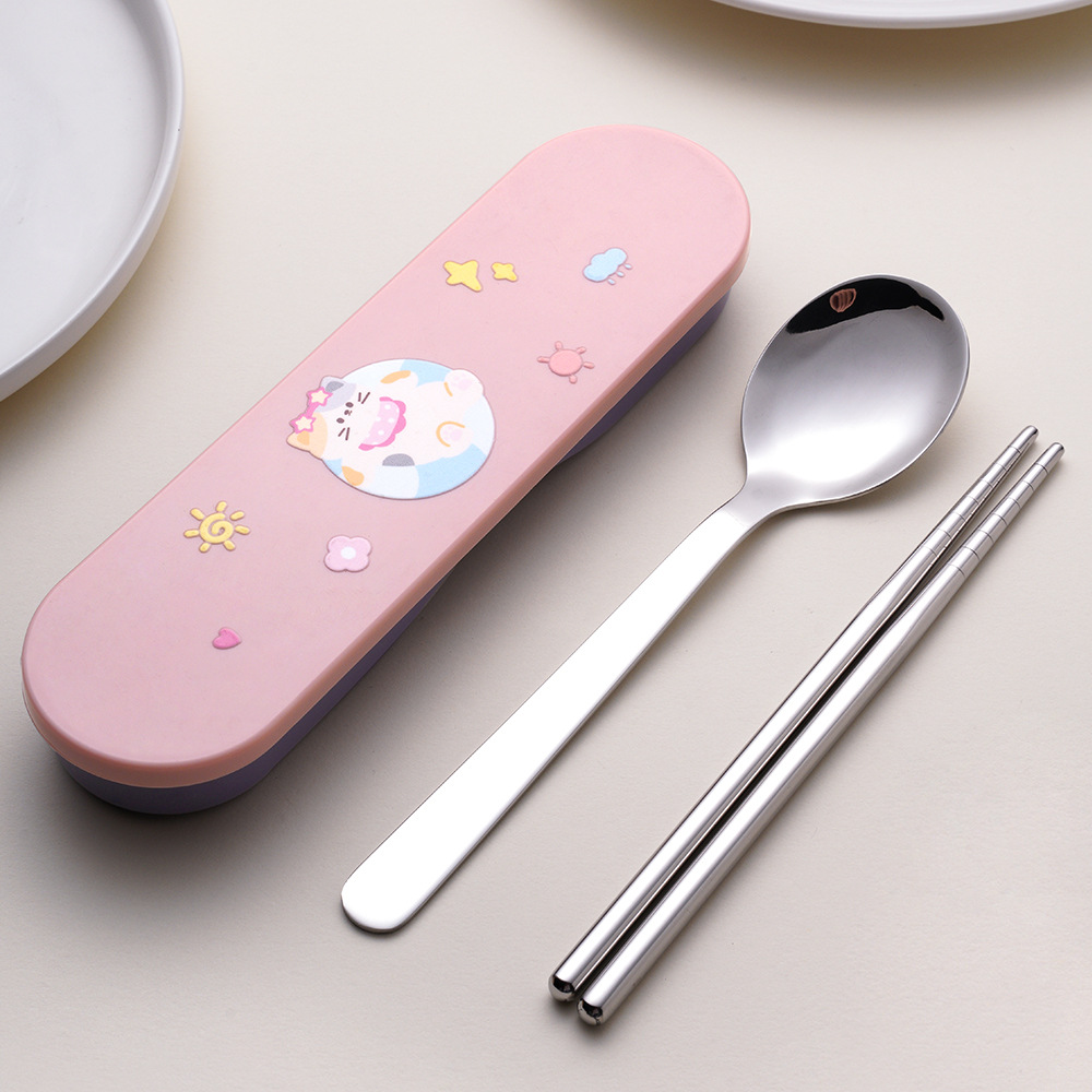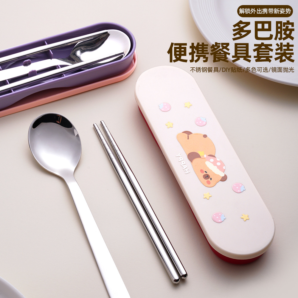 귀여운 만화 도파민 304 스테인레스 스틸 식기 스푼 젓가락 포크 세트 학생 휴대용 식사 식기