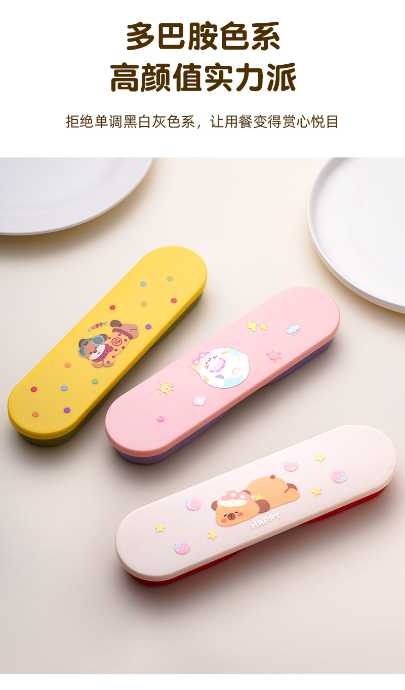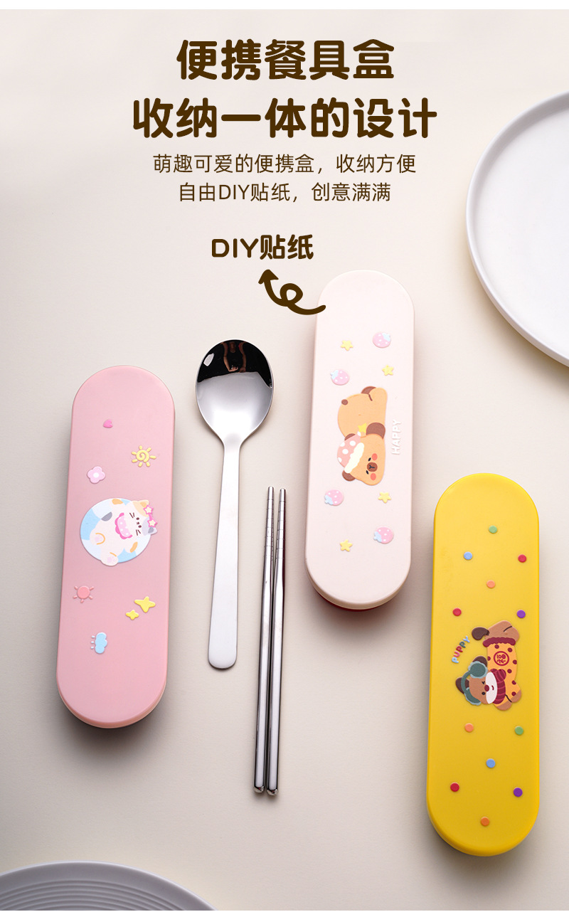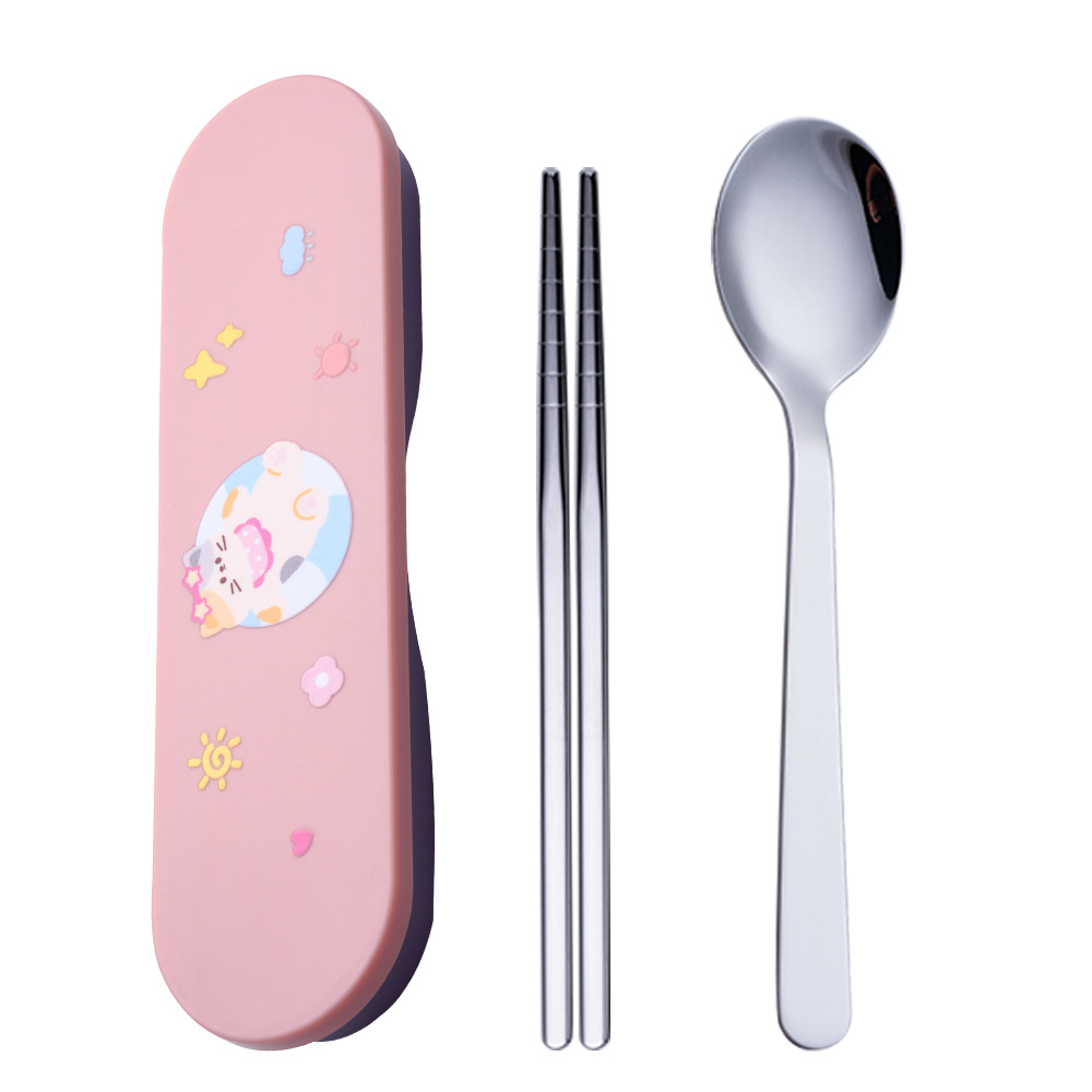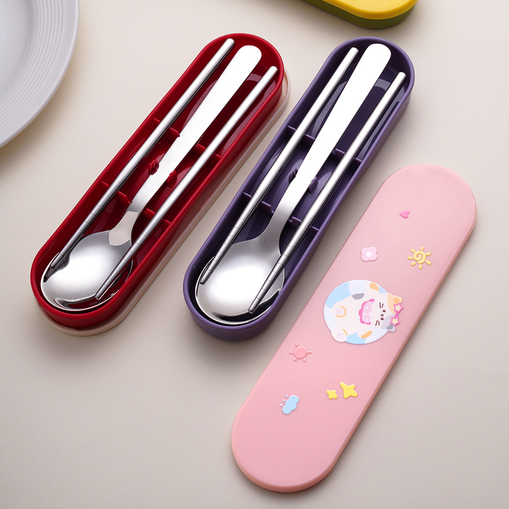 귀여운 만화 도파민 304 스테인레스 스틸 식기 스푼 젓가락 포크 세트 학생 휴대용 식사 식기