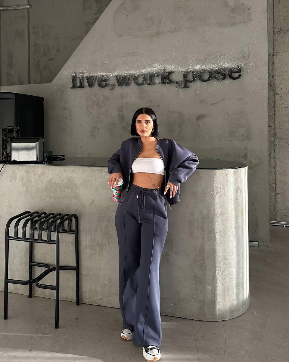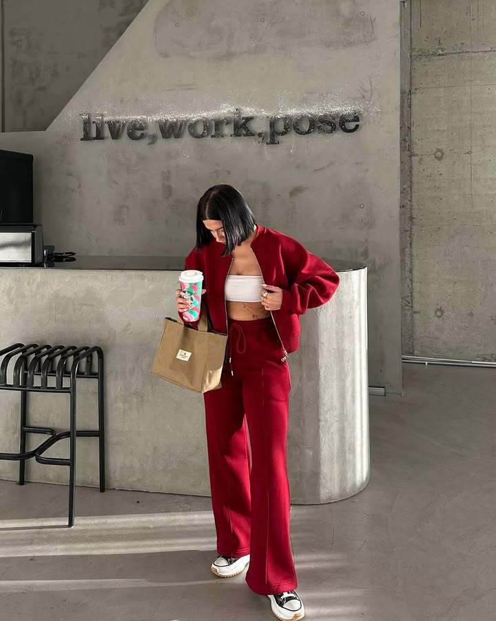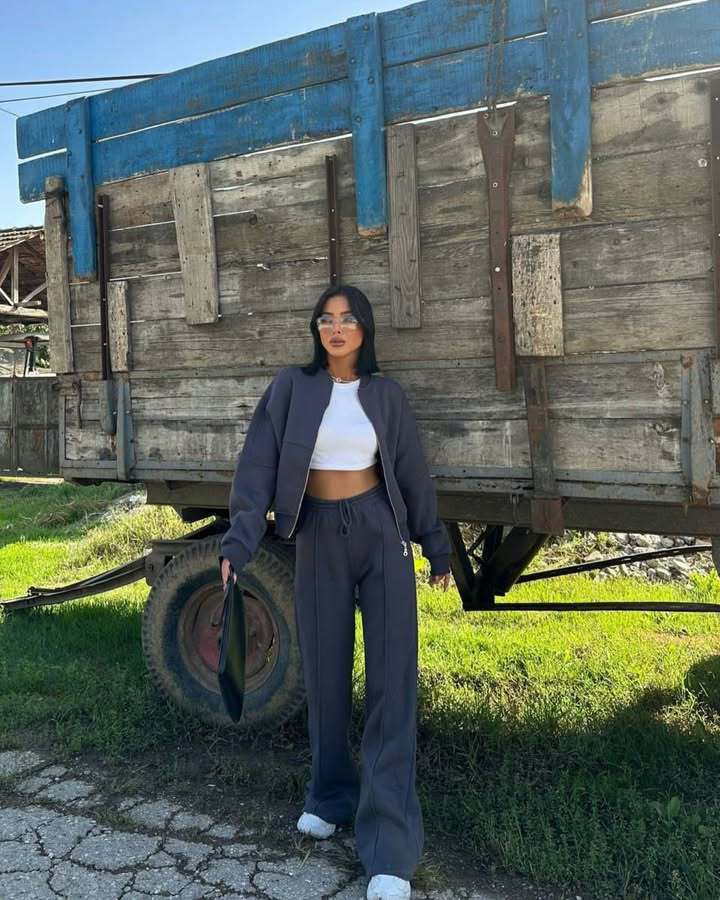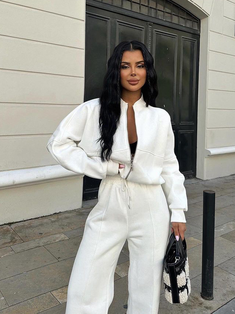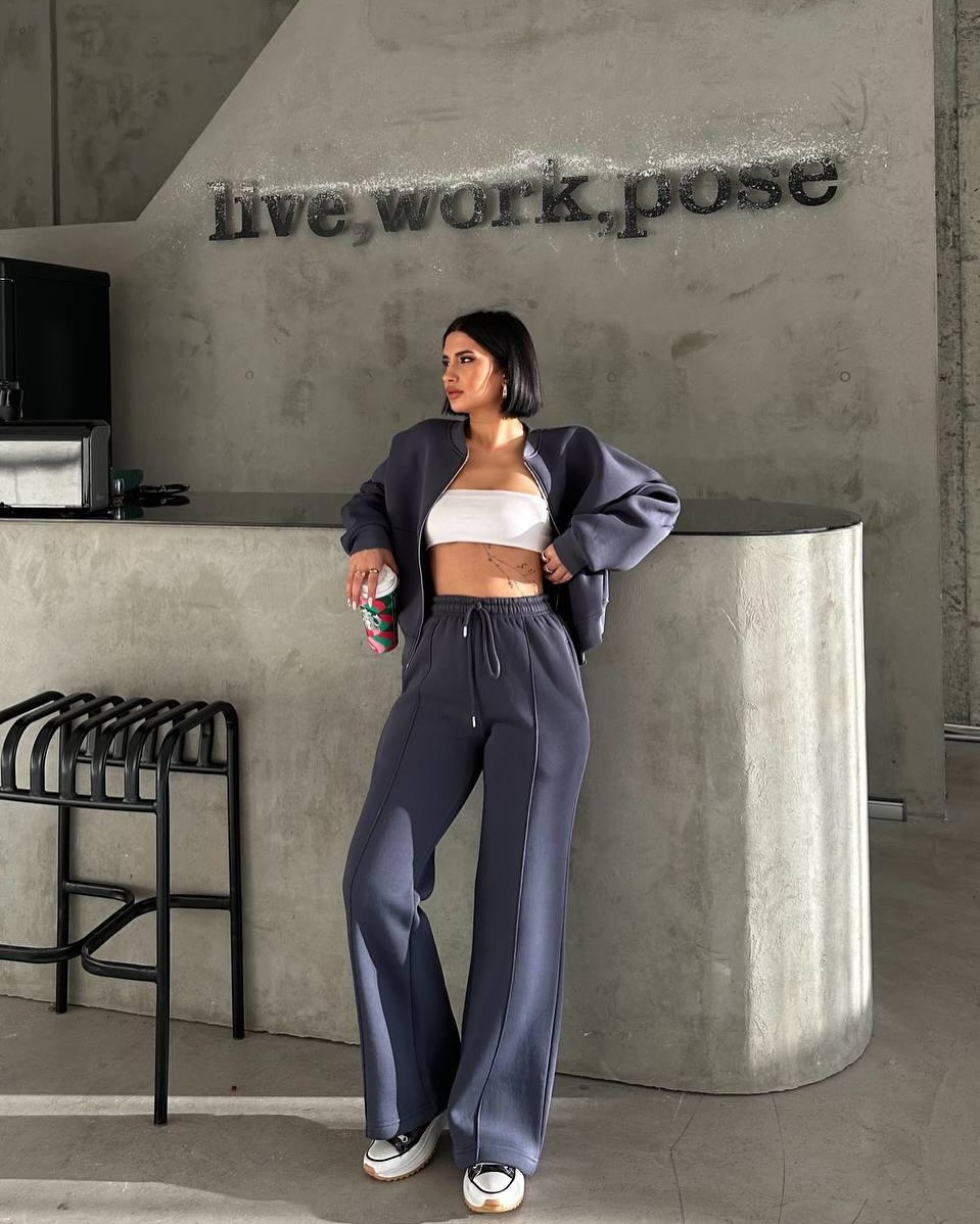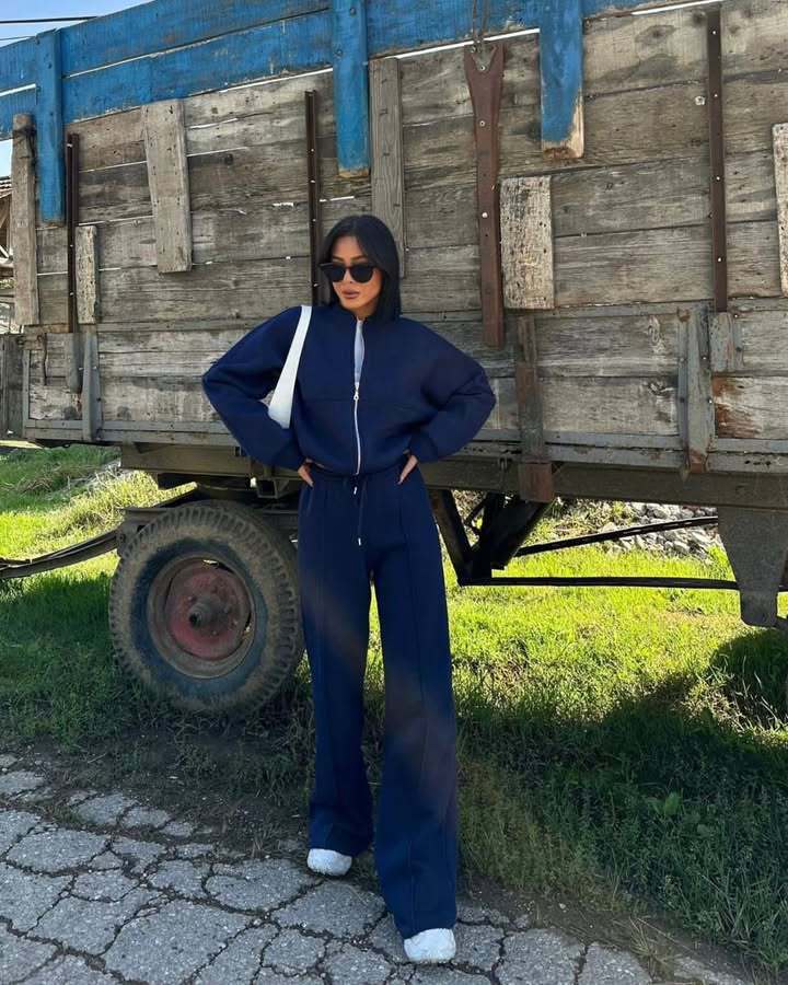 유럽과 미국의 캐주얼 정장, 미국 가을 겨울 가디건, 스포츠 여성 패션 스트리트 스타일 긴팔 재킷과 바지 투피스 세트스토어 가기