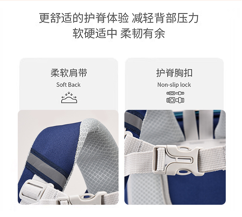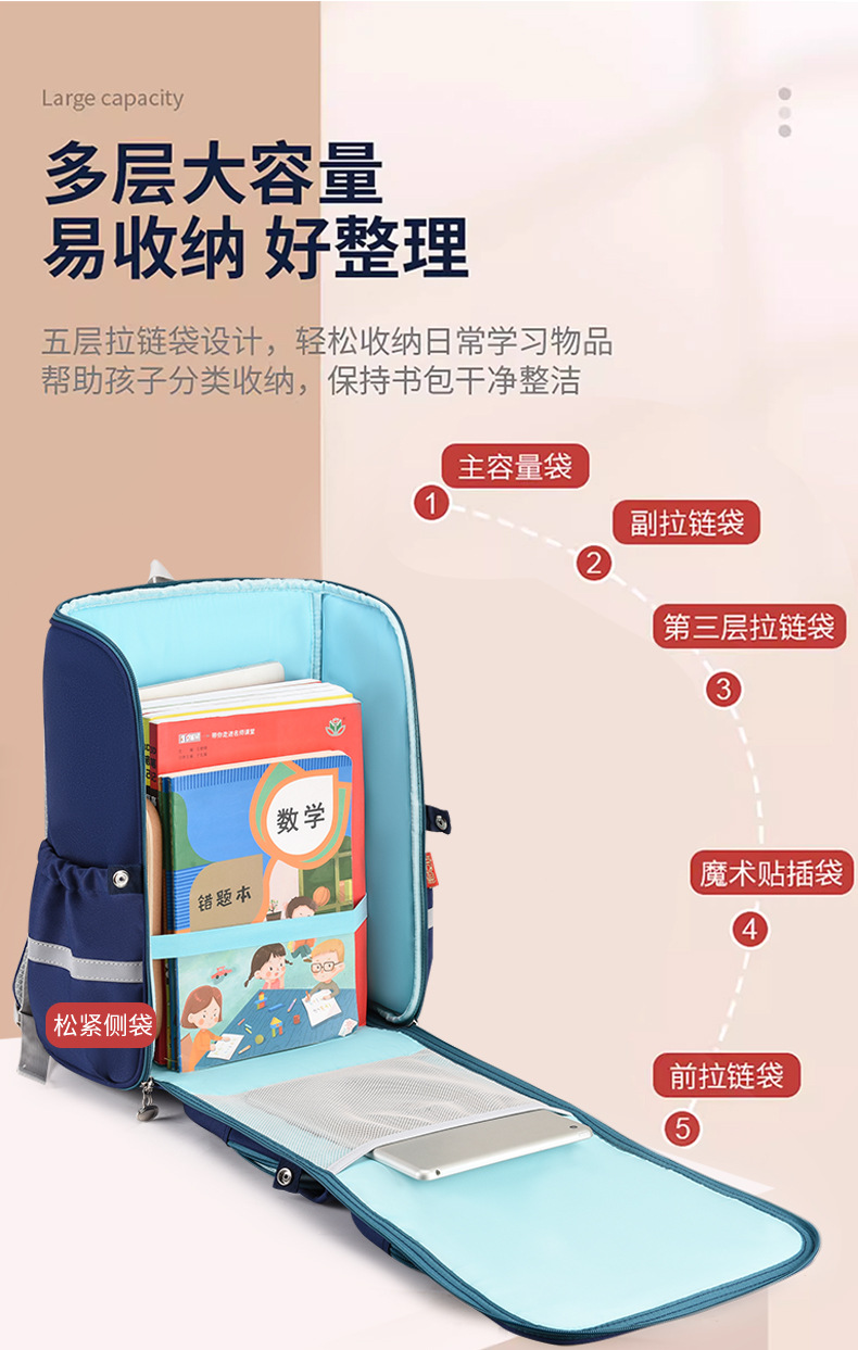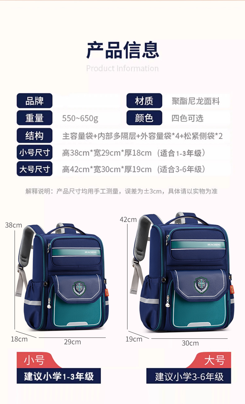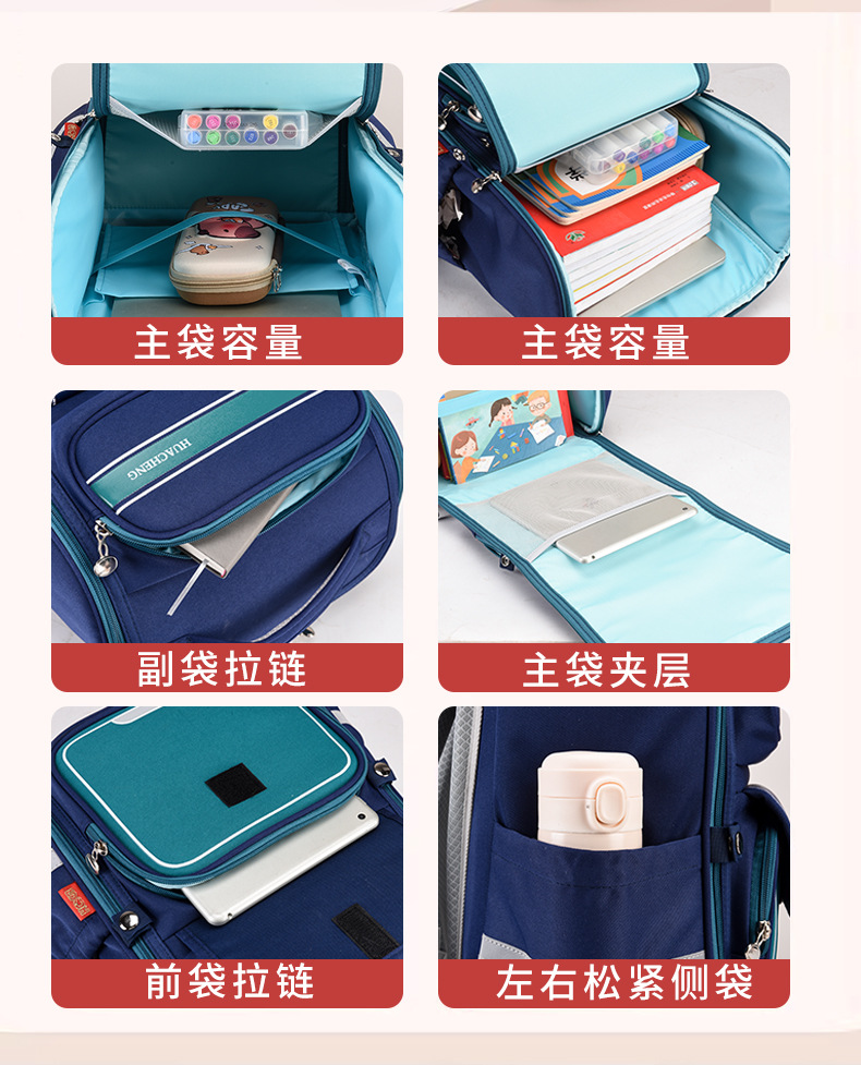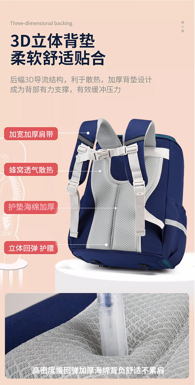 초등학생 1, 2, 3~6학년 남학생 및 여학생 책가방, 추락 방지 척추 보호 어린이 배낭, 부담을 줄여주는 배낭
