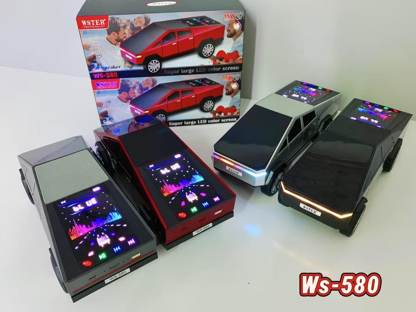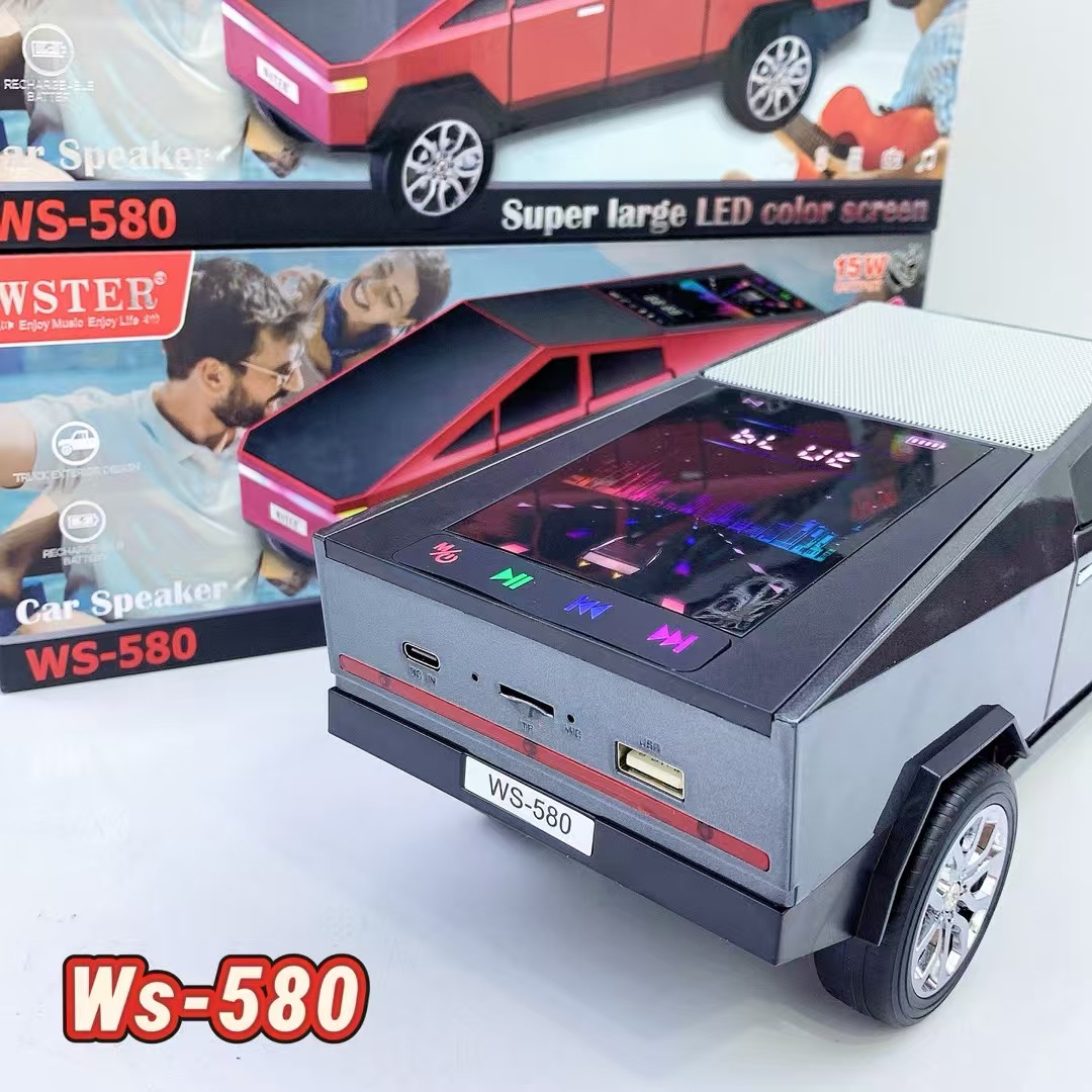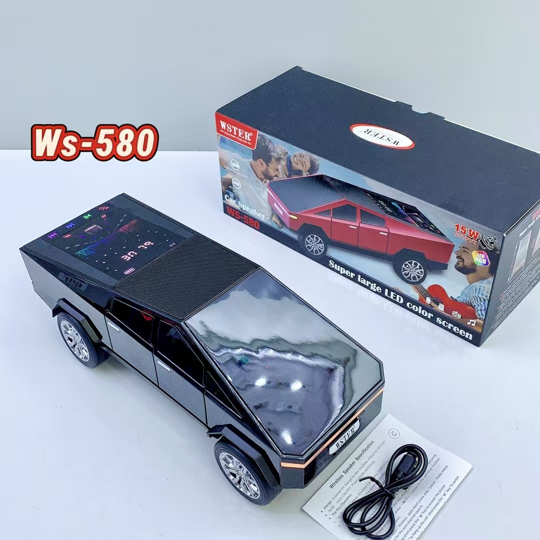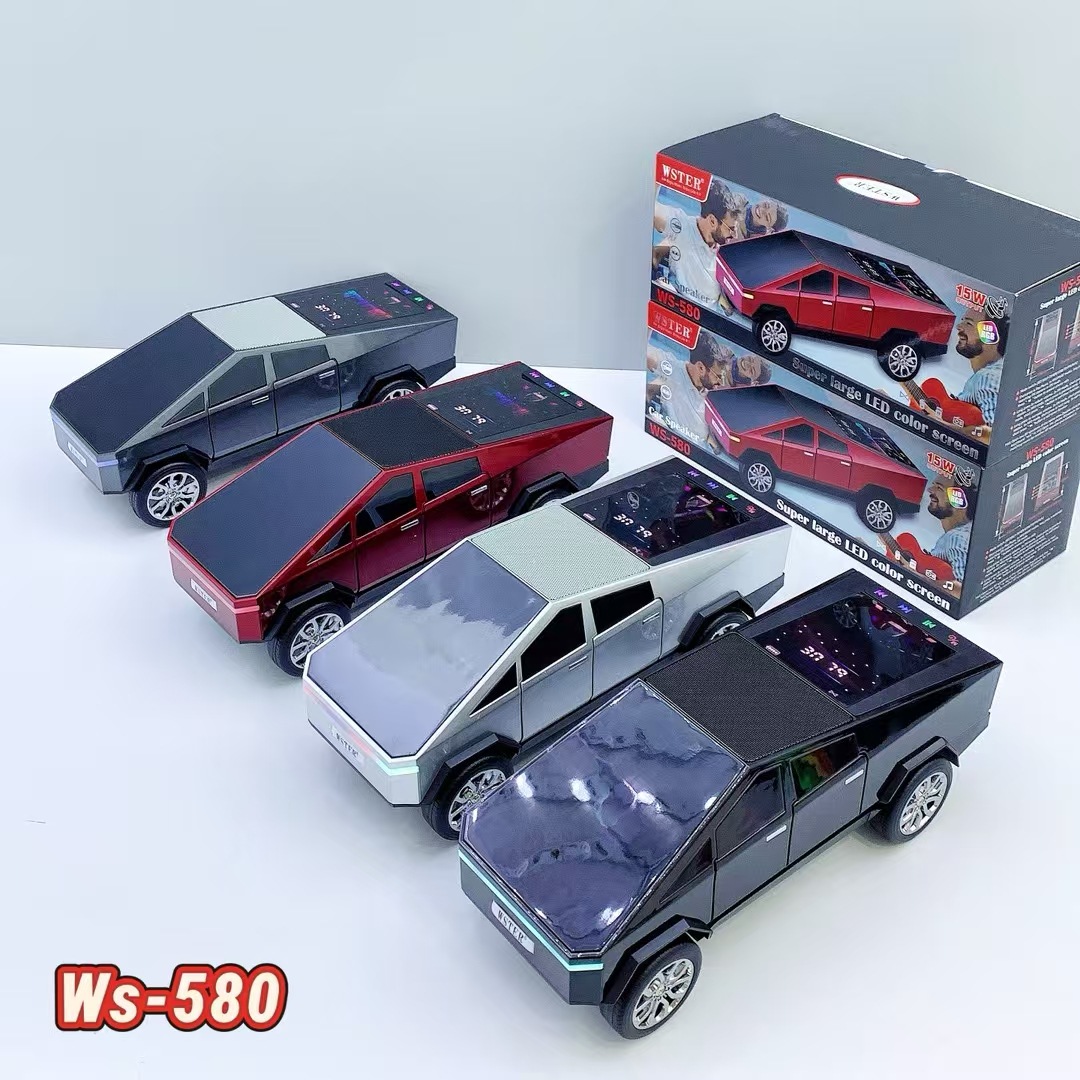 WS580 테슬라 자동차 모델 블루투스 스피커 중저음 무선 오디오 선물 외국 무역 스피커 다이나믹 컬러 스크린스토어 가기