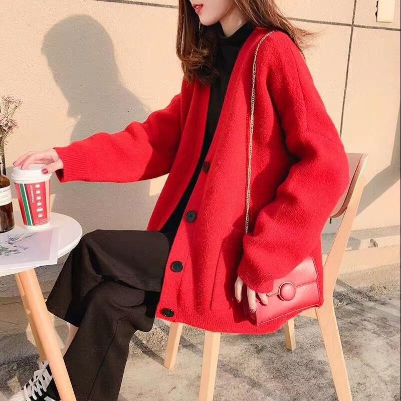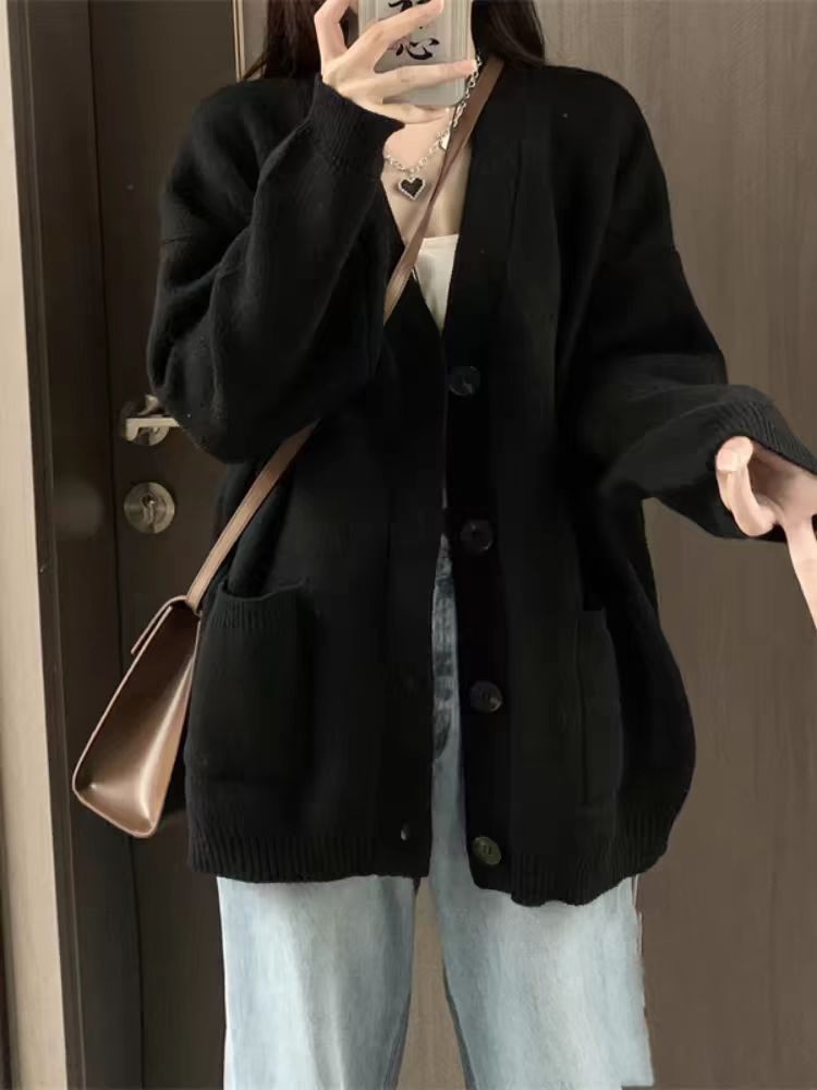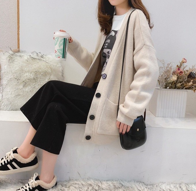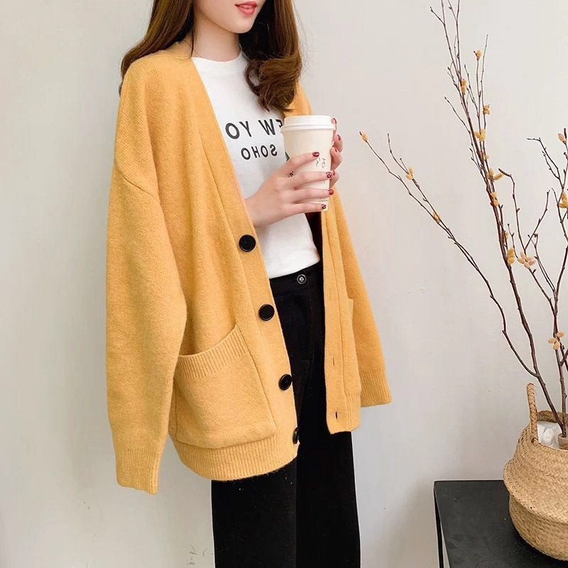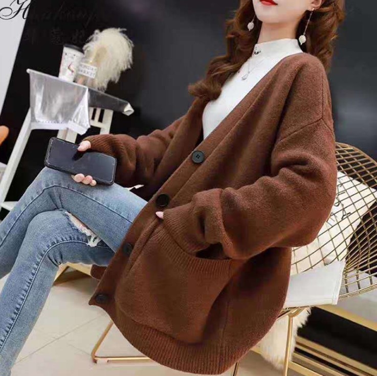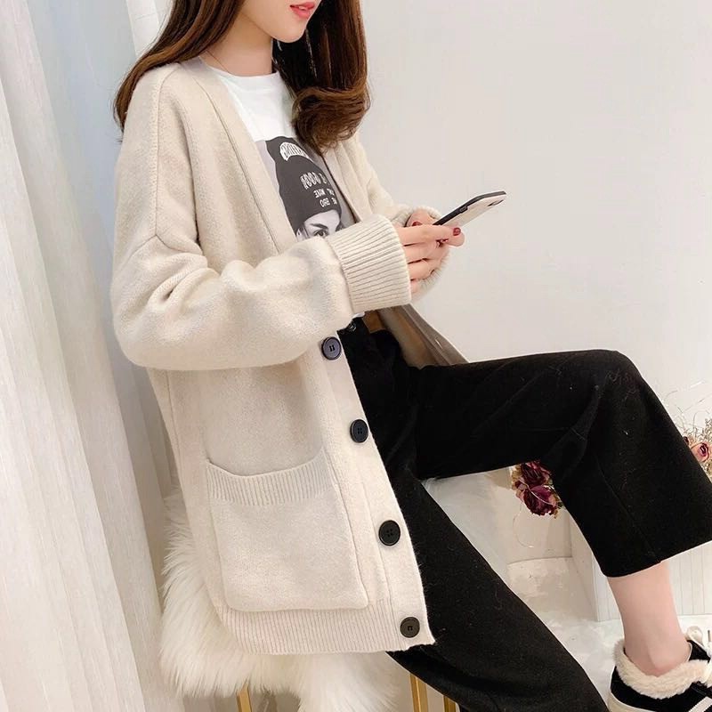 여성을위한 새로운 국경 간 일본과 한국 스타일의 봄, 가을 스웨터 재킷 게으른 스타일 ins 대학 느슨한 겉옷 니트 가디건스토어 가기