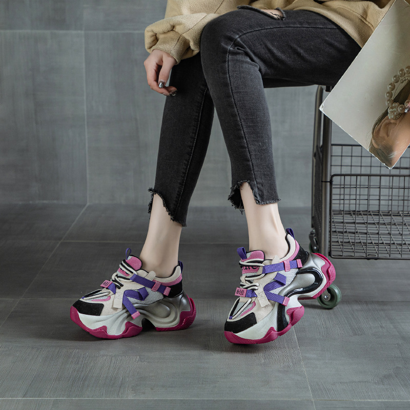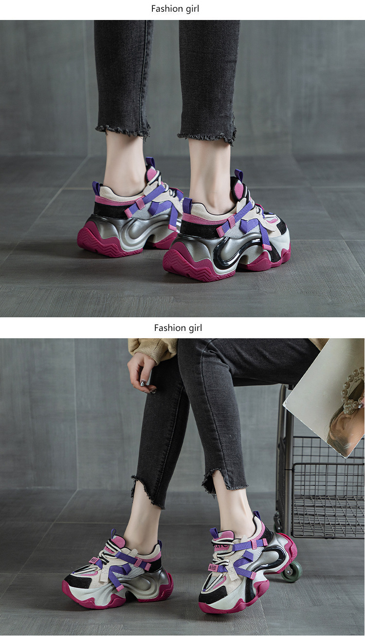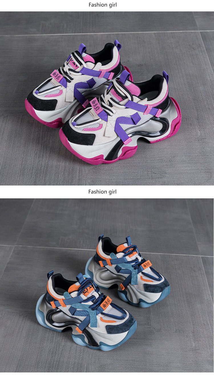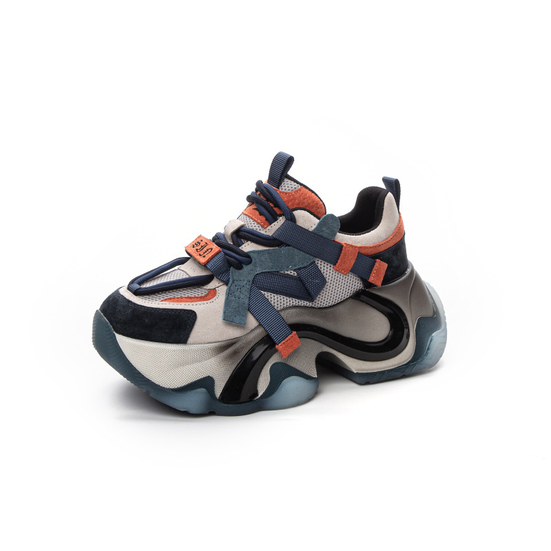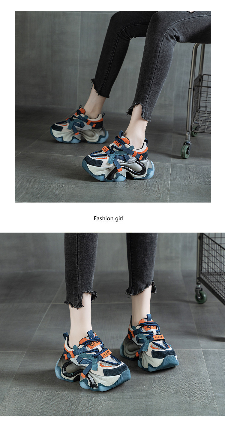 2024 봄 새로운 정품 가죽 두꺼운 밑창 높이 증가 미끄럼 방지 캐주얼 스포츠 신발 신발 여성 레이스 업 Ins 트렌디 신발스토어 가기