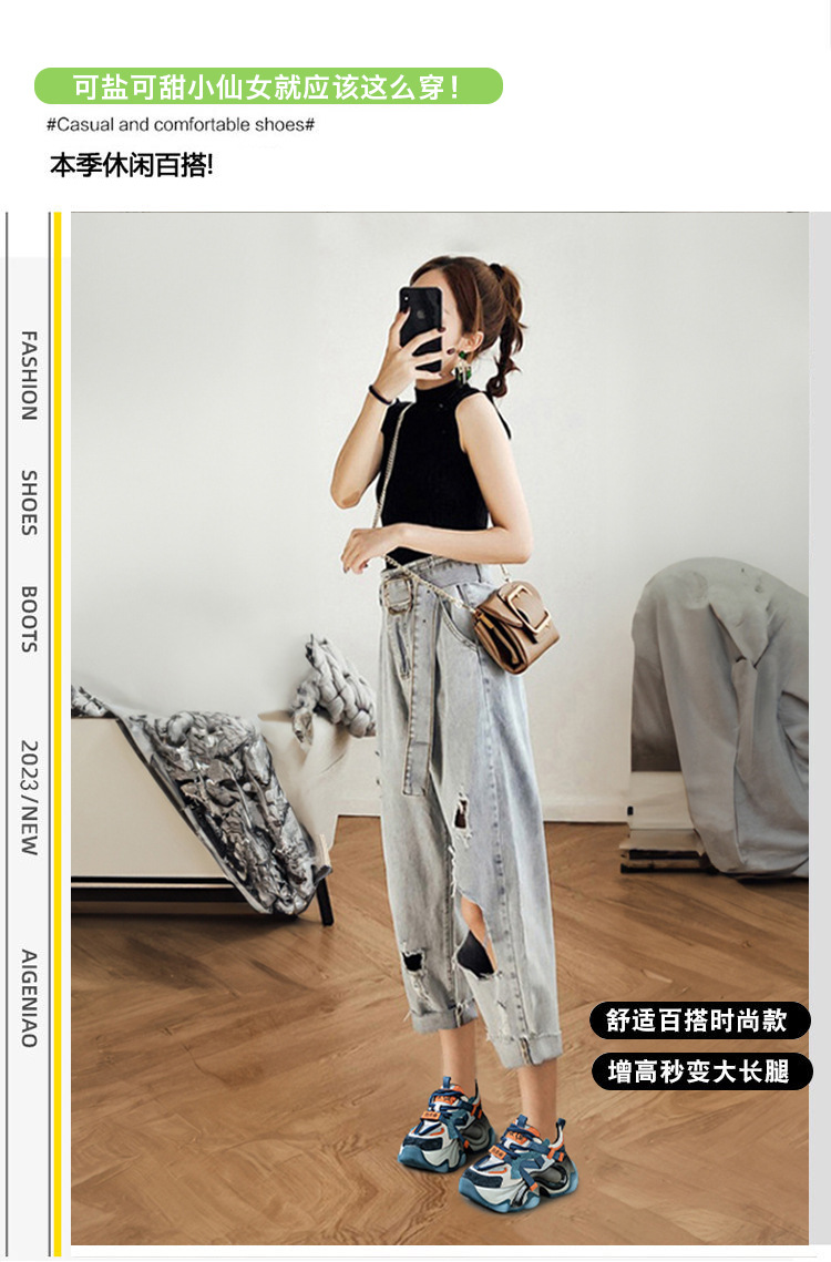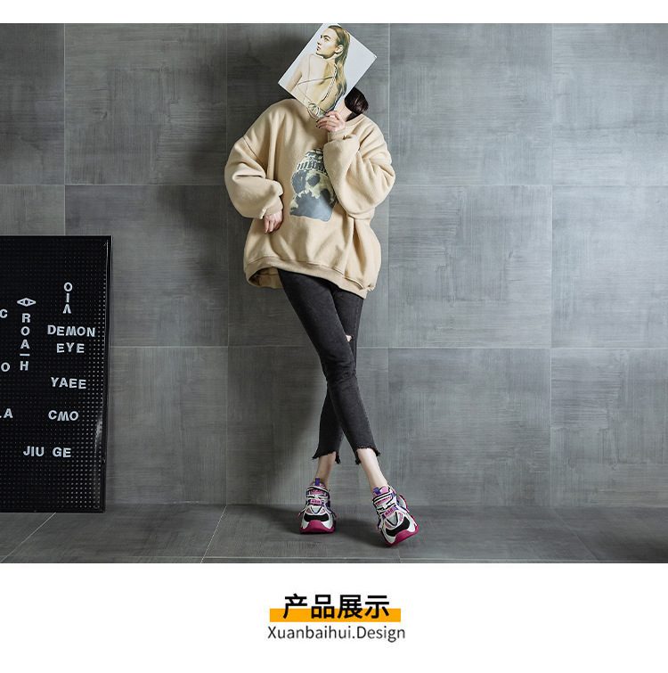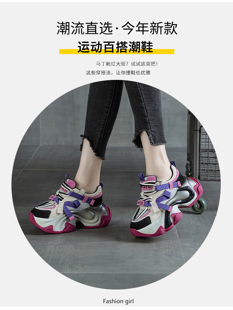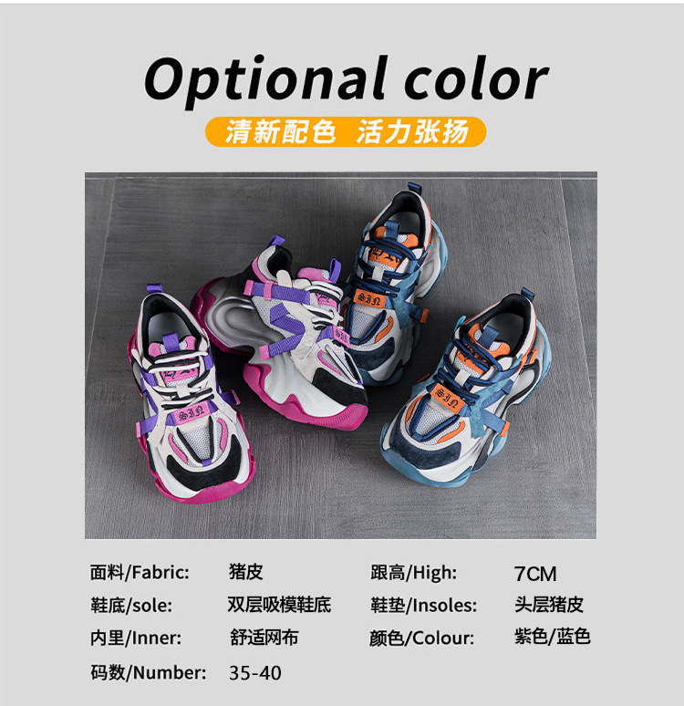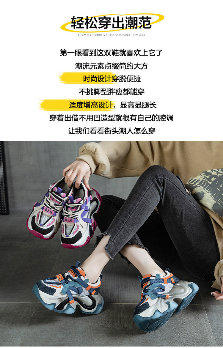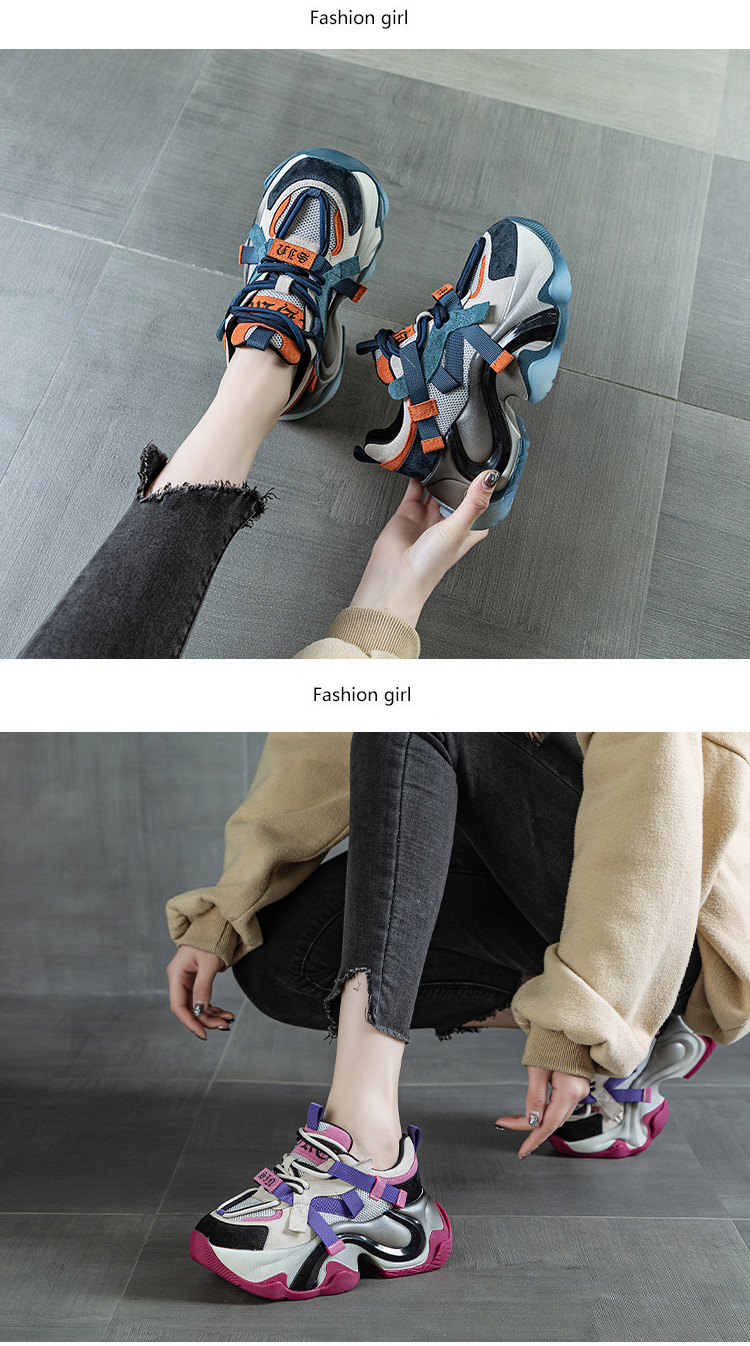 2024 봄 새로운 정품 가죽 두꺼운 밑창 높이 증가 미끄럼 방지 캐주얼 스포츠 신발 신발 여성 레이스 업 Ins 트렌디 신발스토어 가기