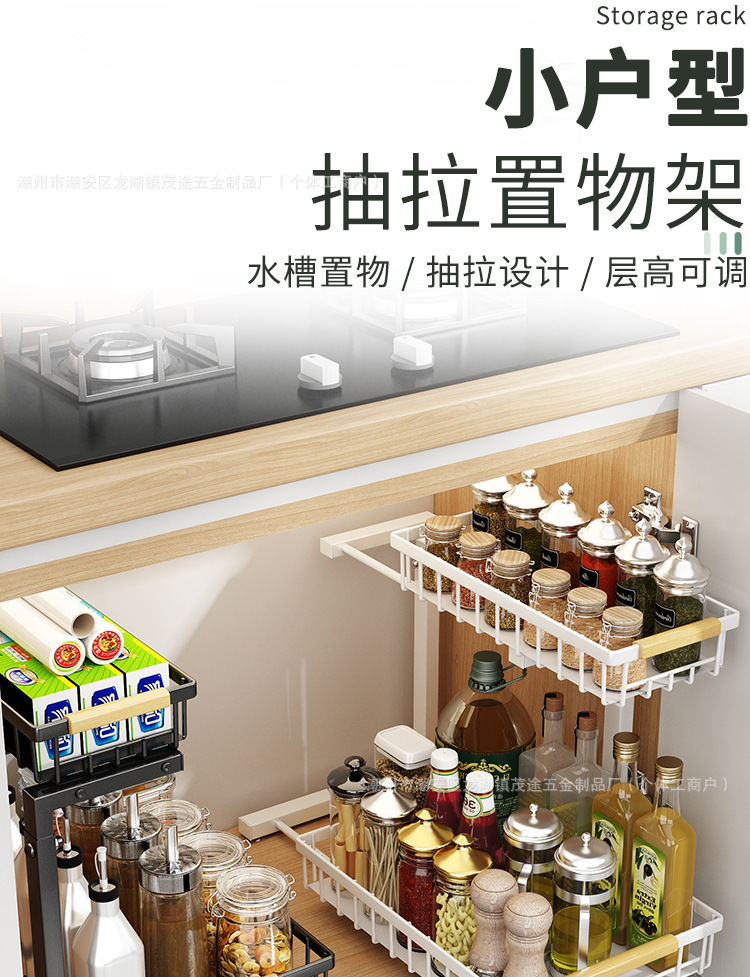 싱크대 아래 주방 선반, 바닥에서 천장까지 조절 가능한 캐비닛, 싱크대 아래 바구니, 가정용 조리대 조미료 보관함스토어 가기