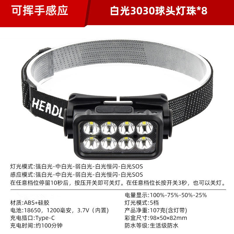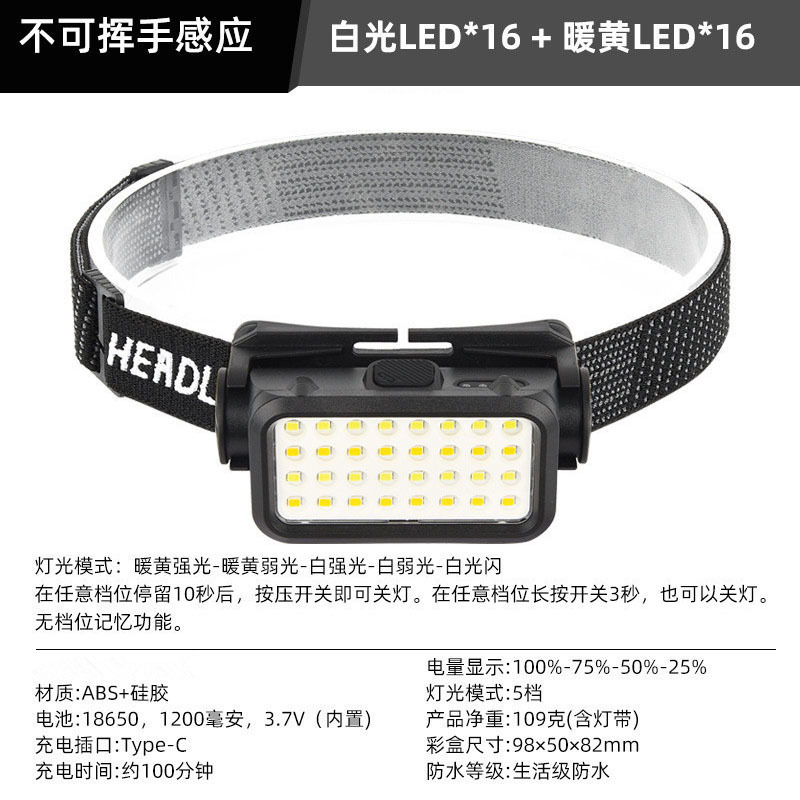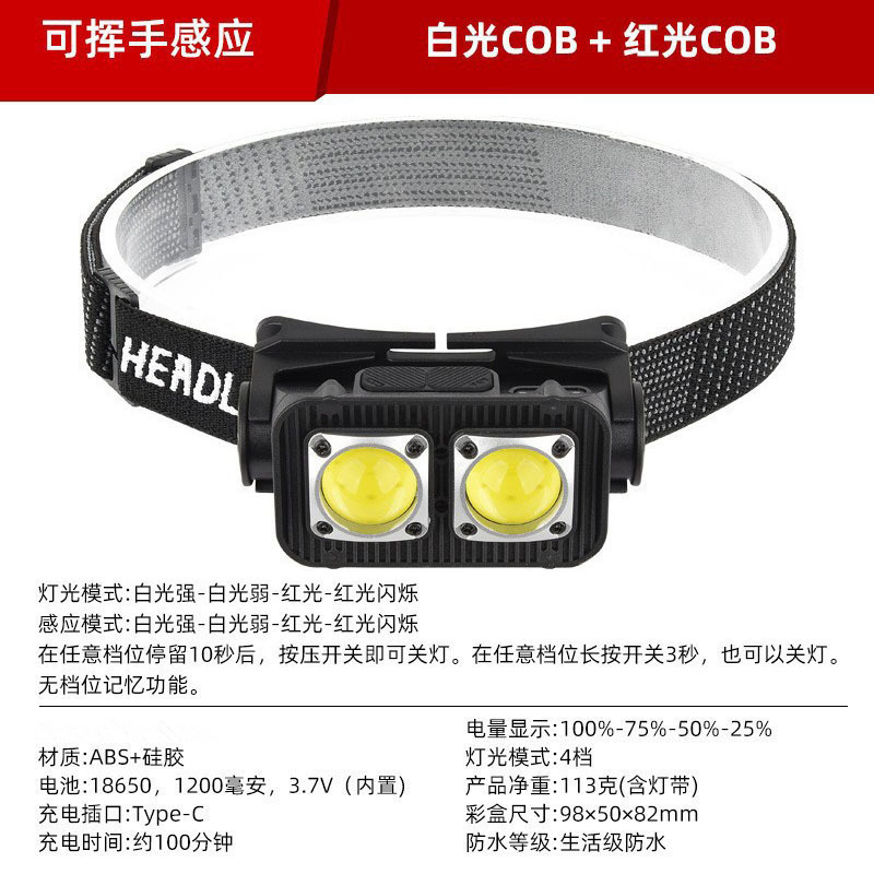 강력한 헤드라이트, 매우 밝은 헤드 장착형 실외 조명, 충전식 COB 풀 뷰 대형 투광 다기능 작업 조명