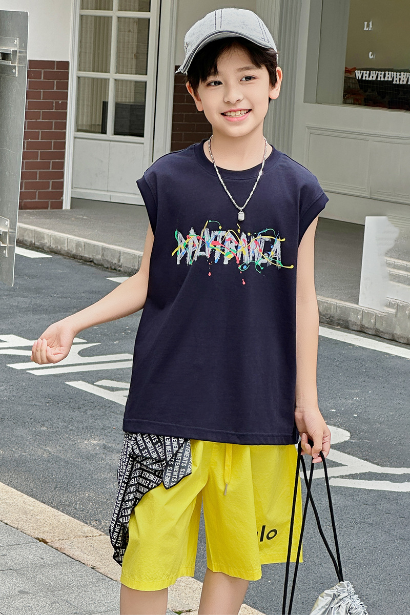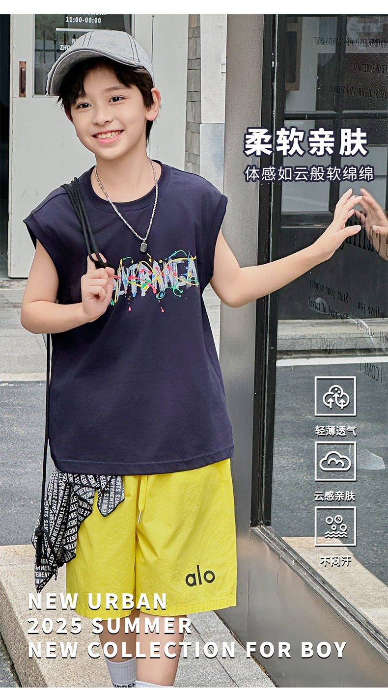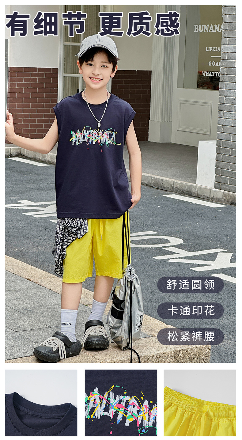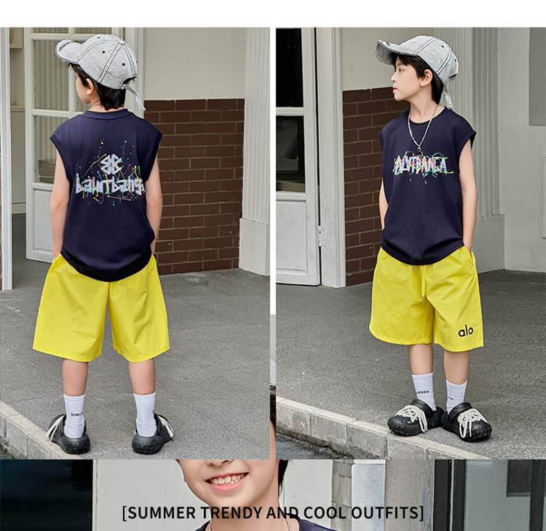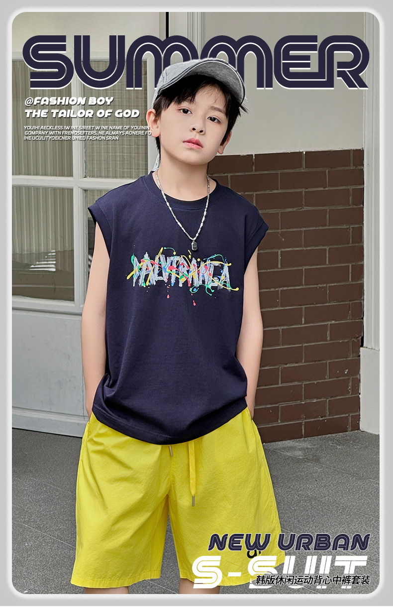 아동복 여름 신상 2026 남아 한국판 프린트 스포츠 조끼 캐주얼 반바지 루즈핏 세트스토어 가기
