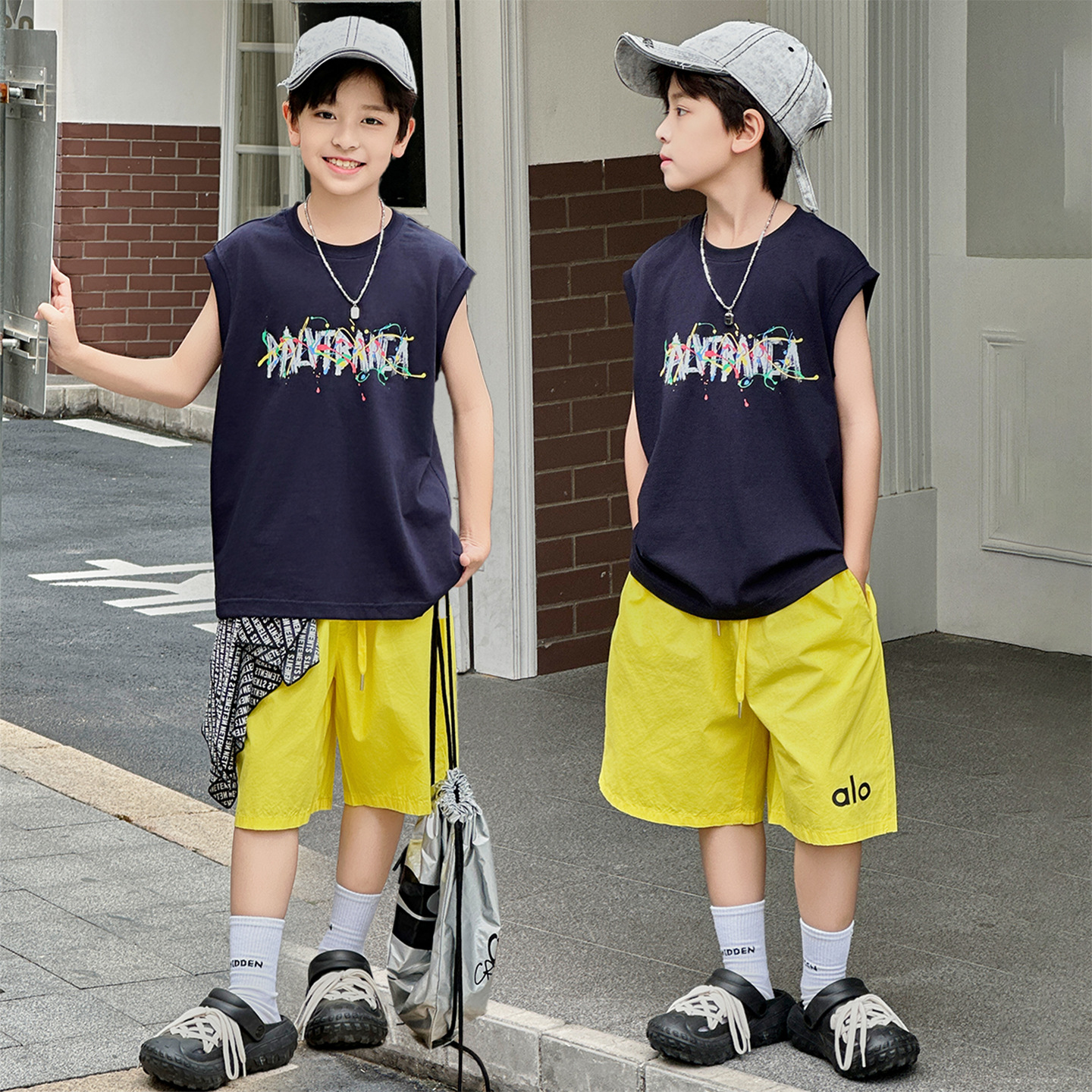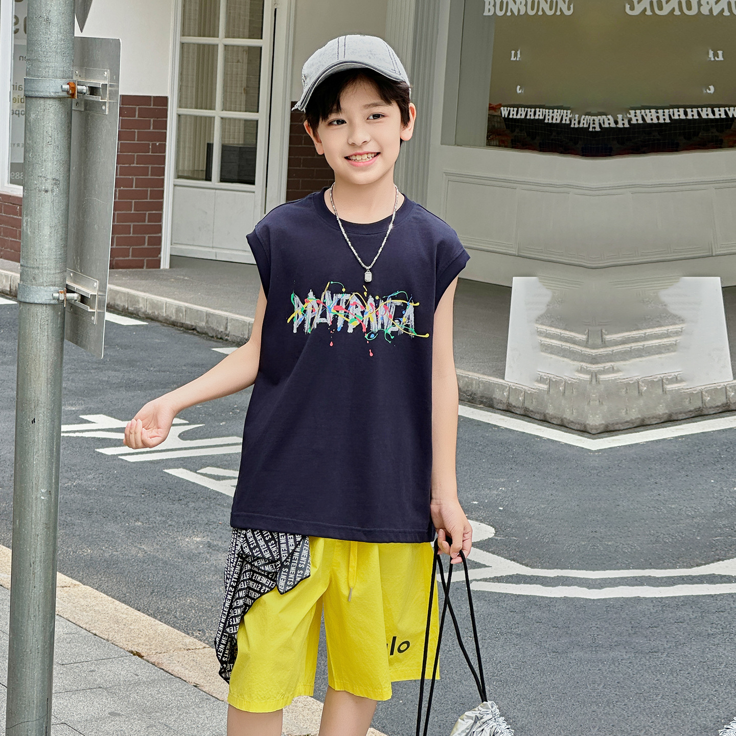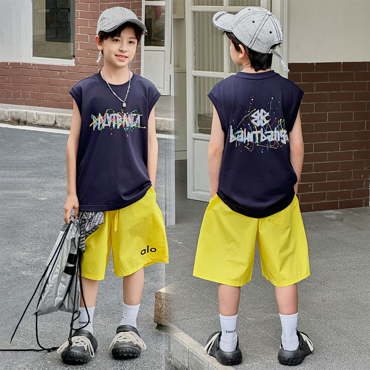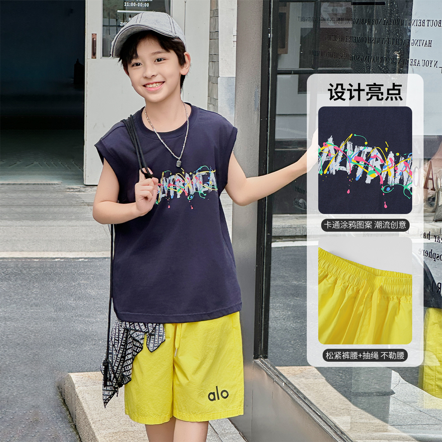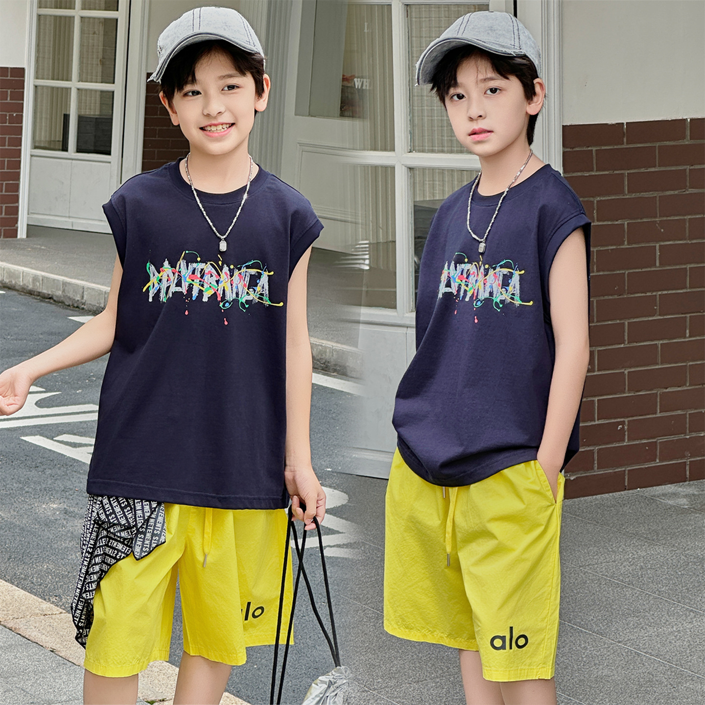 아동복 여름 신상 2026 남아 한국판 프린트 스포츠 조끼 캐주얼 반바지 루즈핏 세트스토어 가기