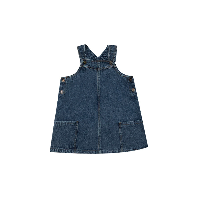 여자 작업복 치마 2025 여름 새로운 여성의 보물 끈 스커트 레트로 씻은 어린이 데님 스커트 원피스