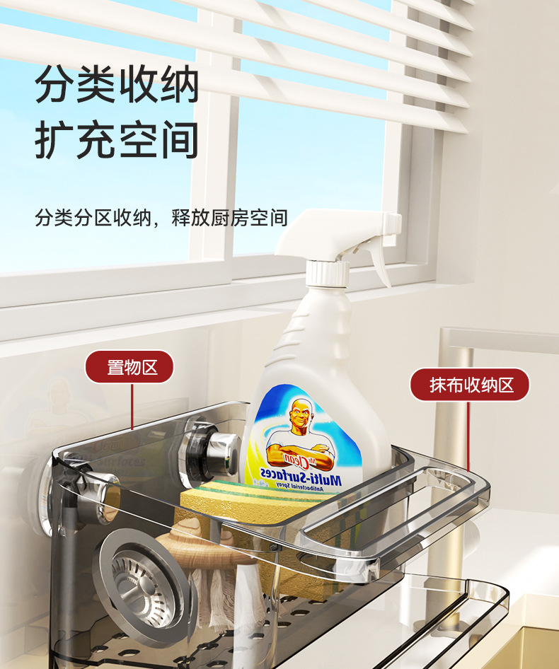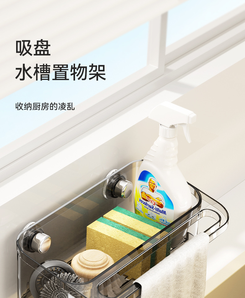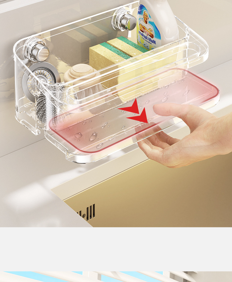 • 흡착식 싱크대 사각 선반 (투명 실버)