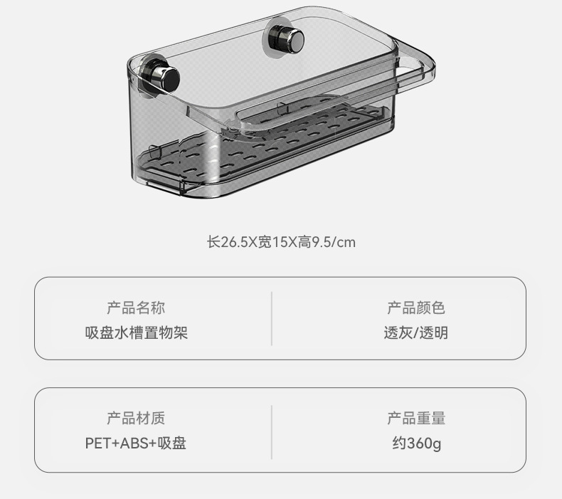 • 흡착식 싱크대 사각 선반 (투명 회색)