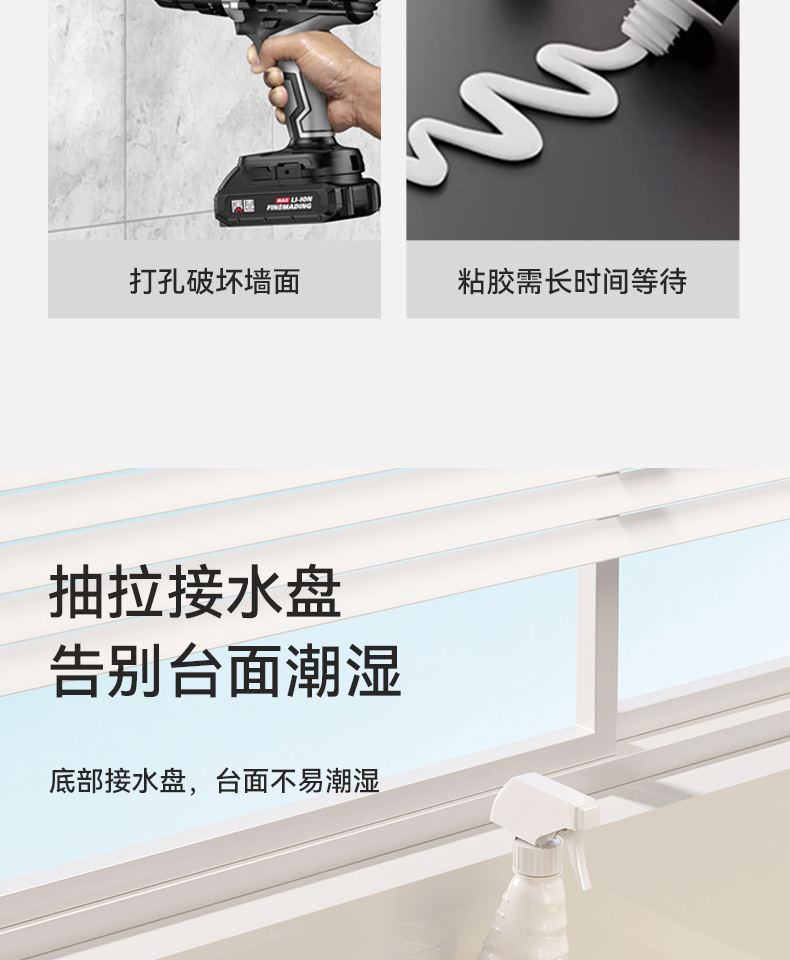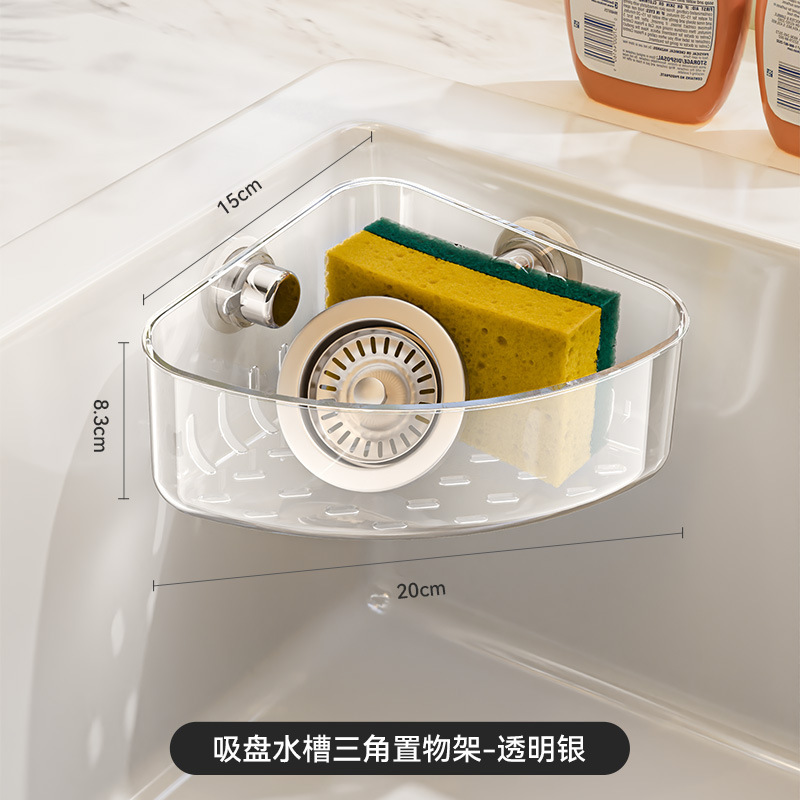 • 흡착식 싱크대 삼각 선반 - 투명 실버