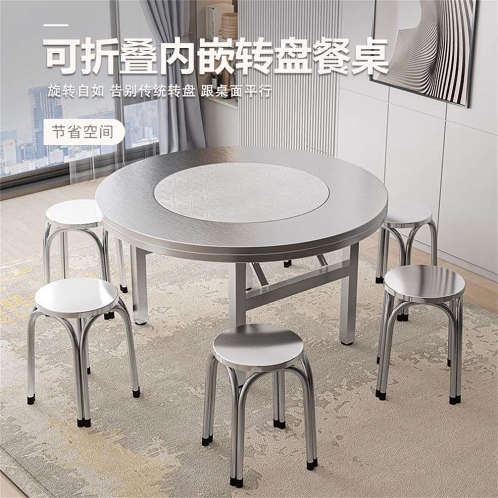 스테인레스 스틸 대형 원형 테이블 접이식 가정용 내장 턴테이블 테이블 야외 바베큐 흐르는 물 테이블 스낵 바 식탁스토어 가기