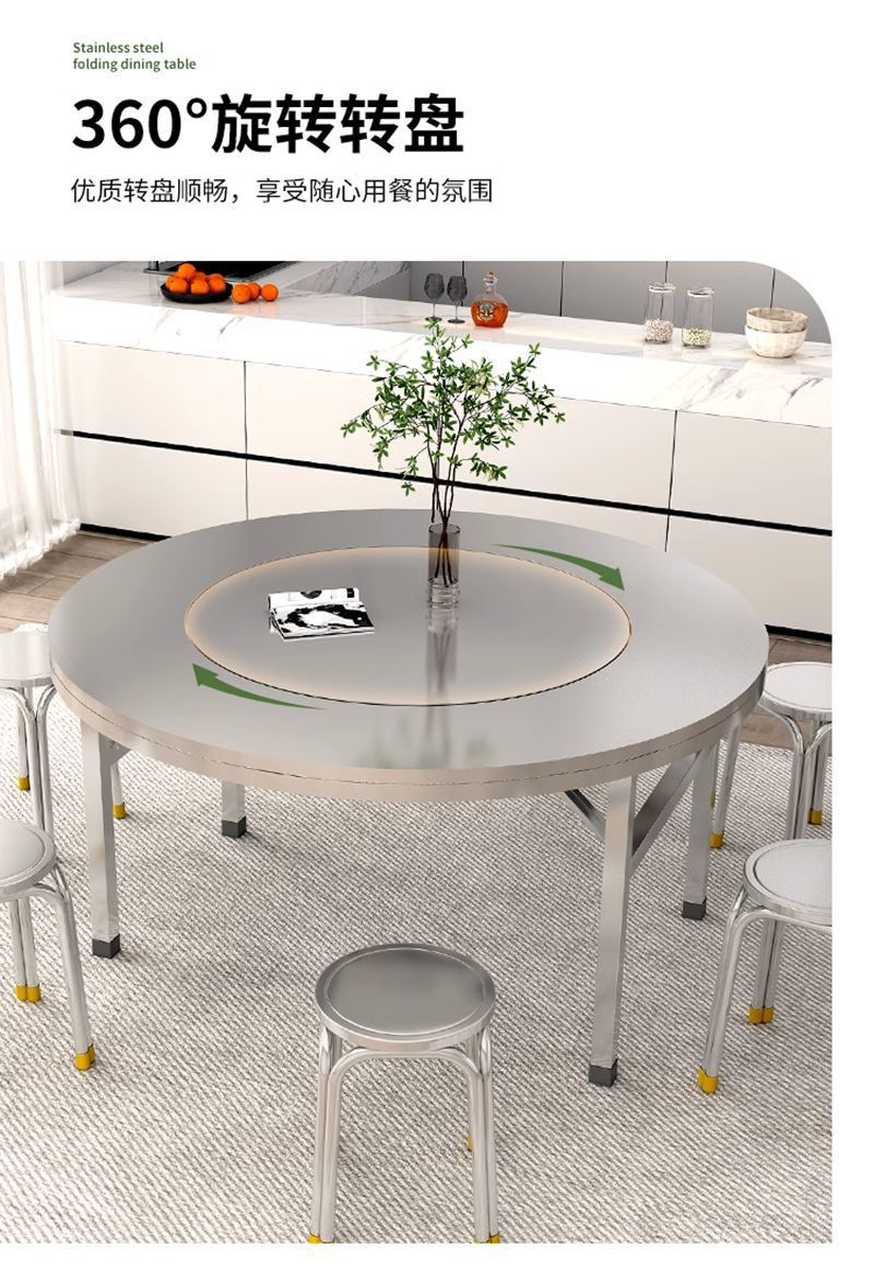 • 업그레이드된 고품질 스테인레스 스틸 두꺼운 접이식 원형 테이블 1.4m 높이 75