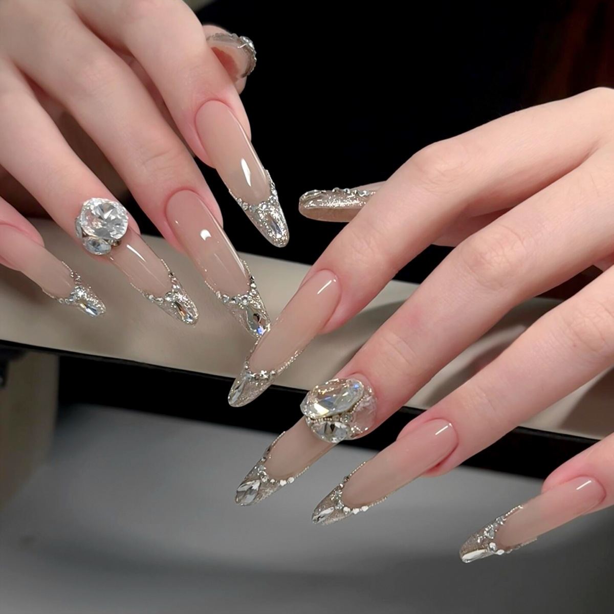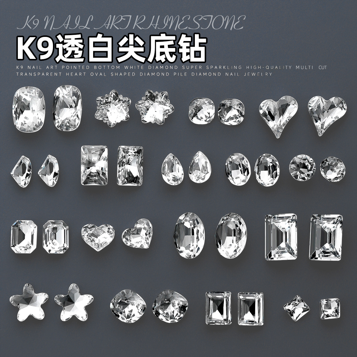 화이트 네일아트 다이아몬드 K9 대량 반짝이 다이아몬드 장식품 뾰족한 바닥 특수형 다이아몬드 혼합형 네일 장식품 도매 크리스탈