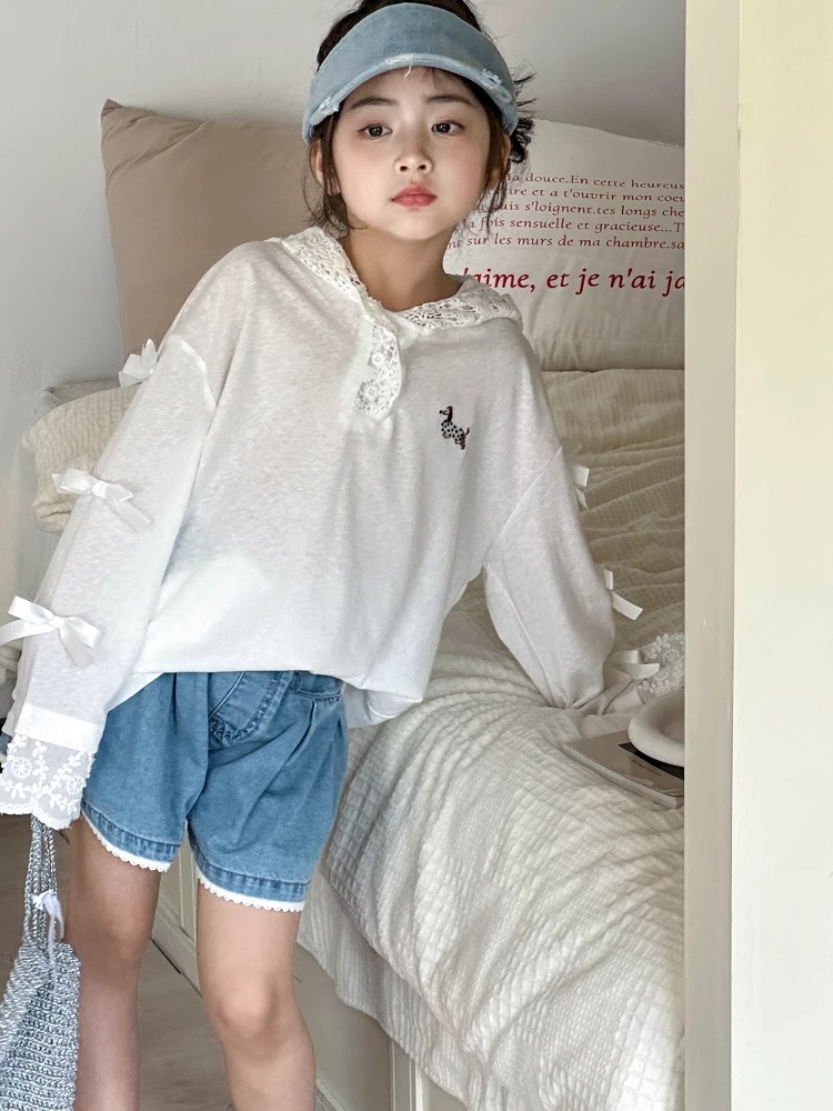 리틀 레드 피쉬 걸스 티셔츠 얇은 긴팔 선 스크린 의류 2025 새로운 아이 옷 후드 아동용 탑