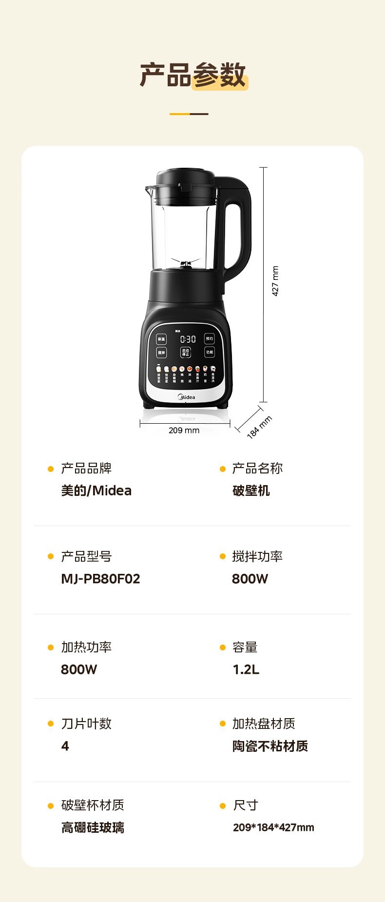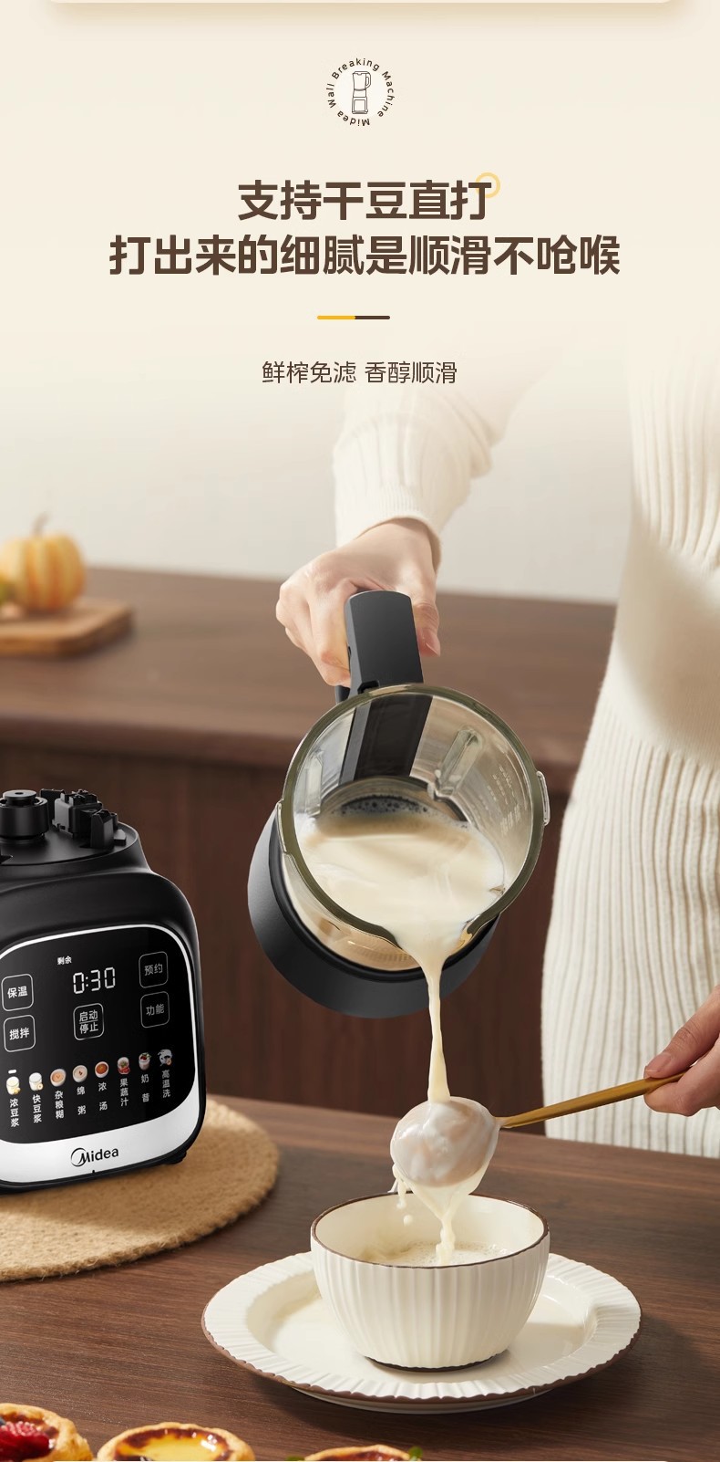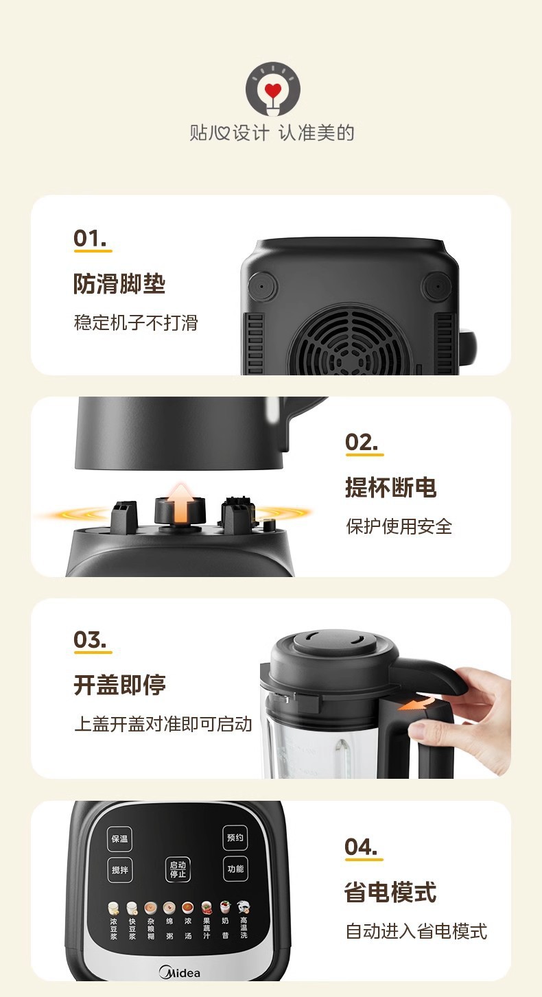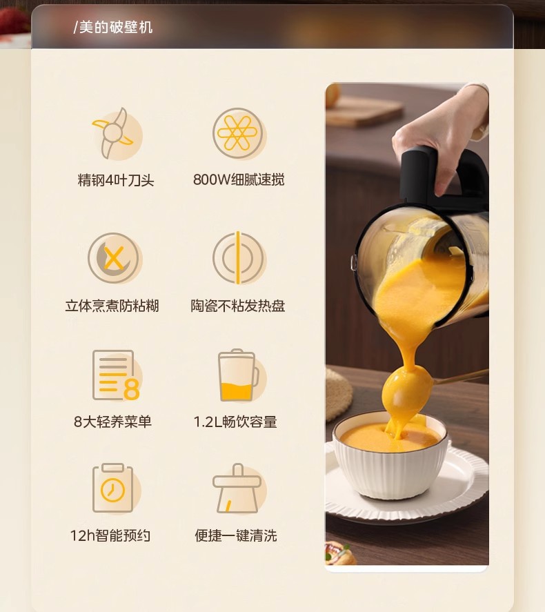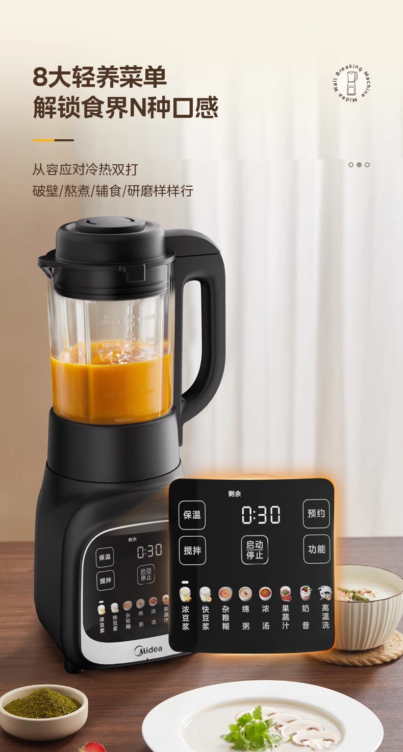 Midea 벽 파괴 기계 가정용 완전 자동 저음 필터 프리 가열 건강 요리 주스 두유 기계 MJ-PB80F02스토어 가기