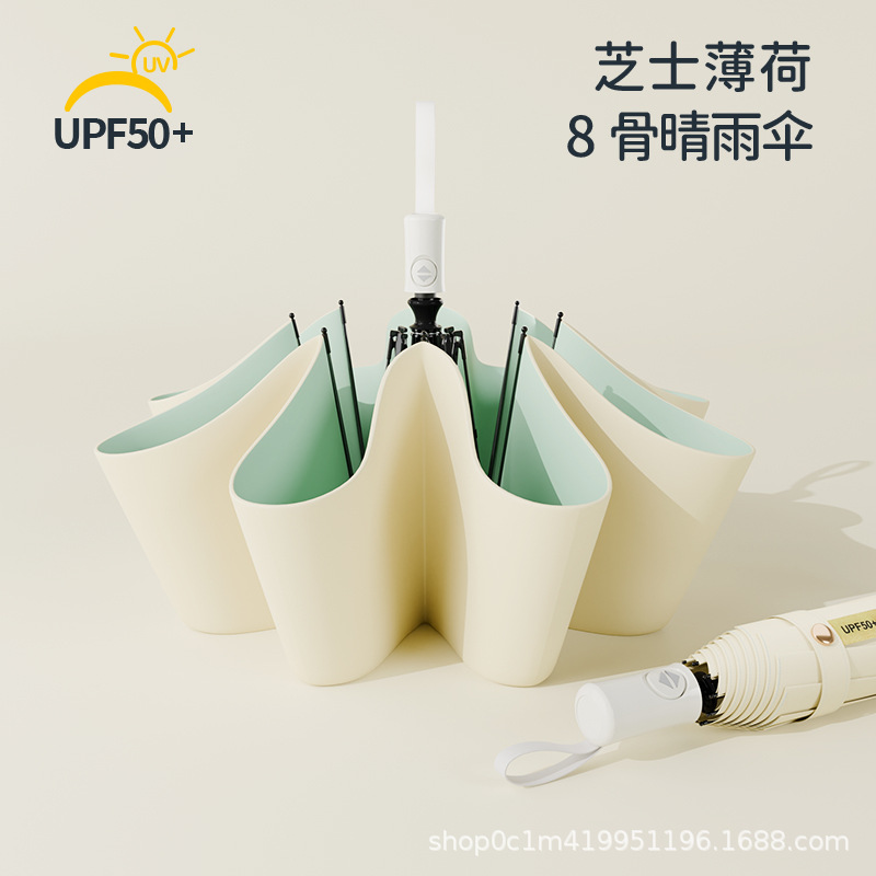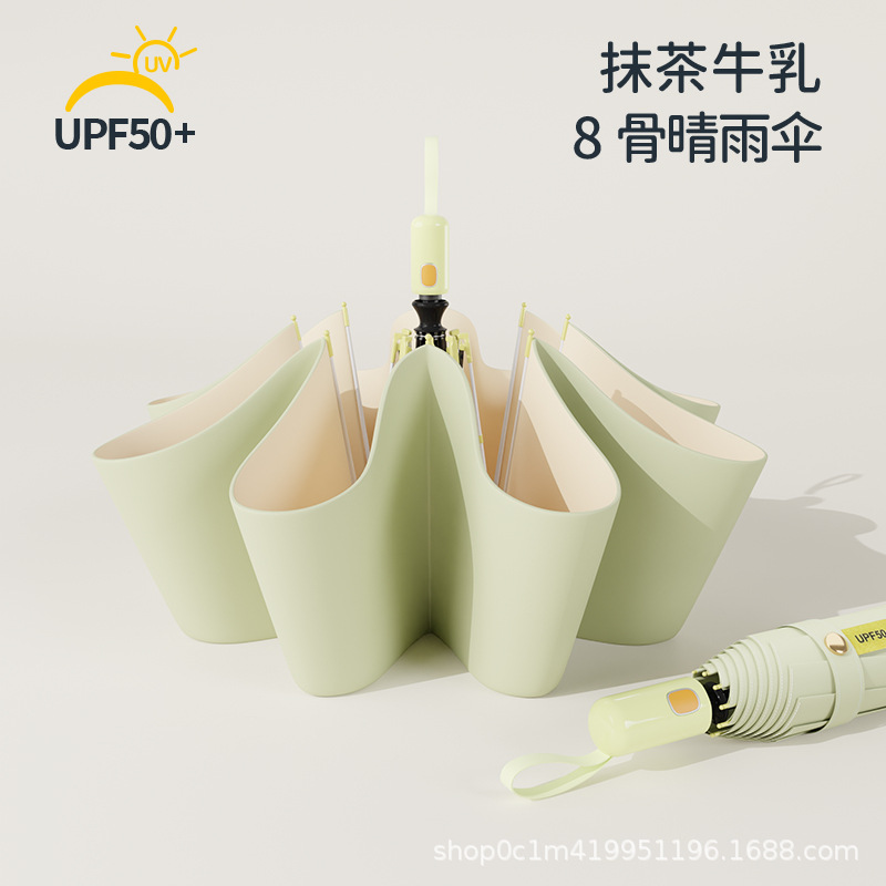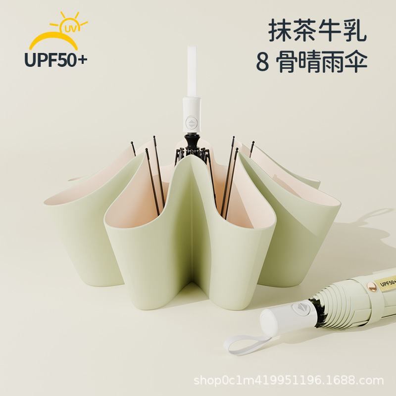 • 말차 우유 [가벼워서 휴대 가능, 비가 오나 눈이 오나 사용 가능] *8k 금색 우산 갈비뼈