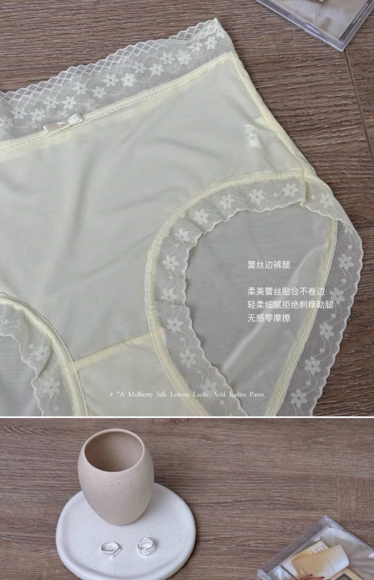 9618 Zhongmai Youpin 7A 실크 레몬 젖산 바닥 가랑이 레이디 팬츠 가볍고 통기성이 뛰어나며 부드럽고 달콤한 레이스 팬티스토어 가기
