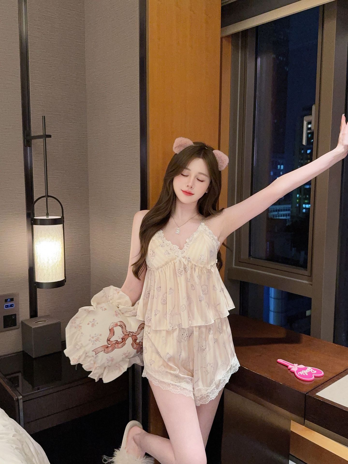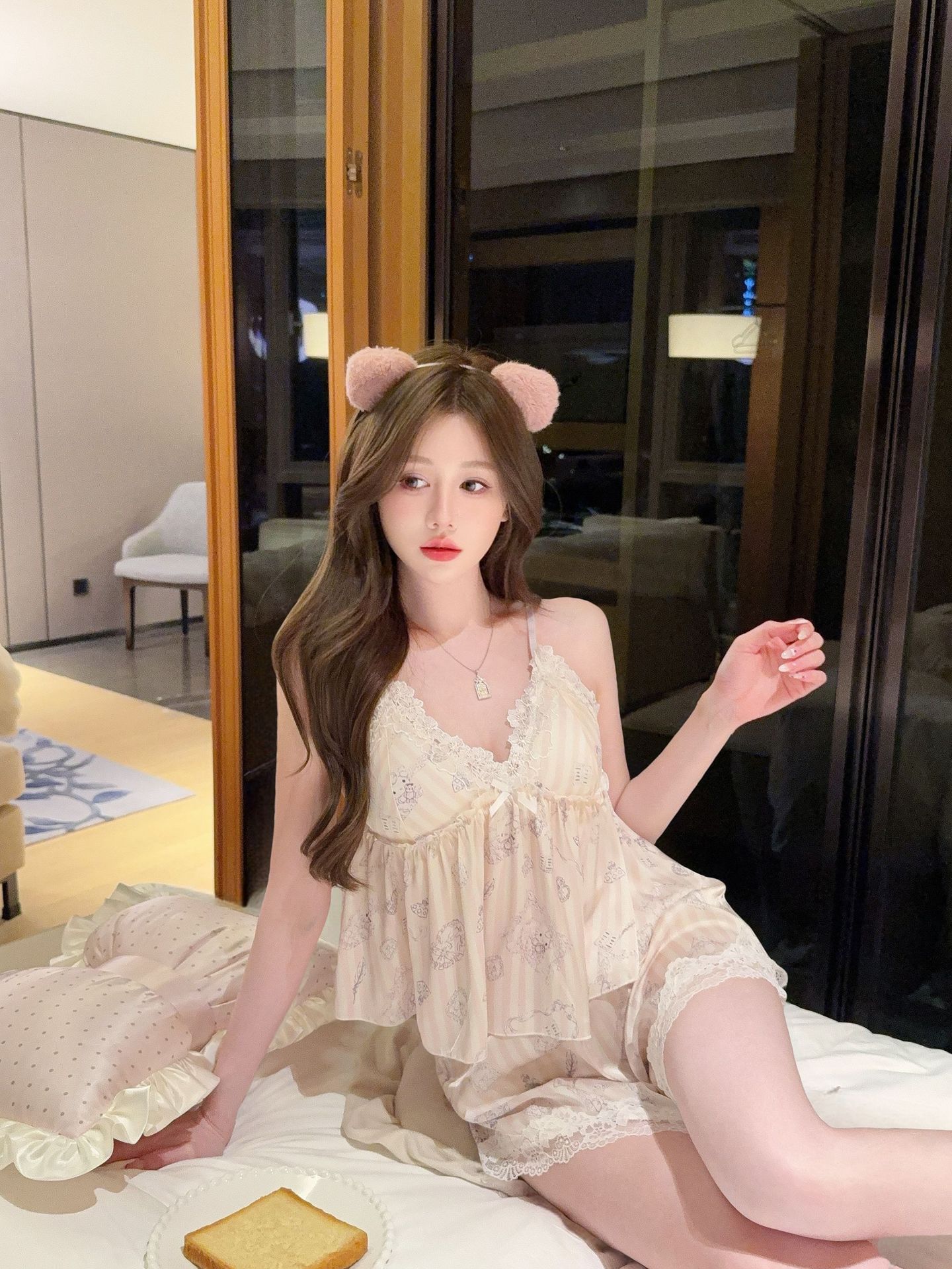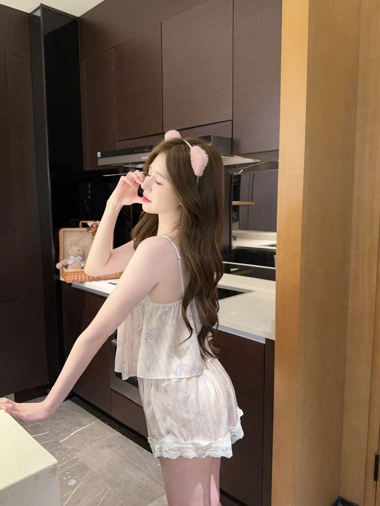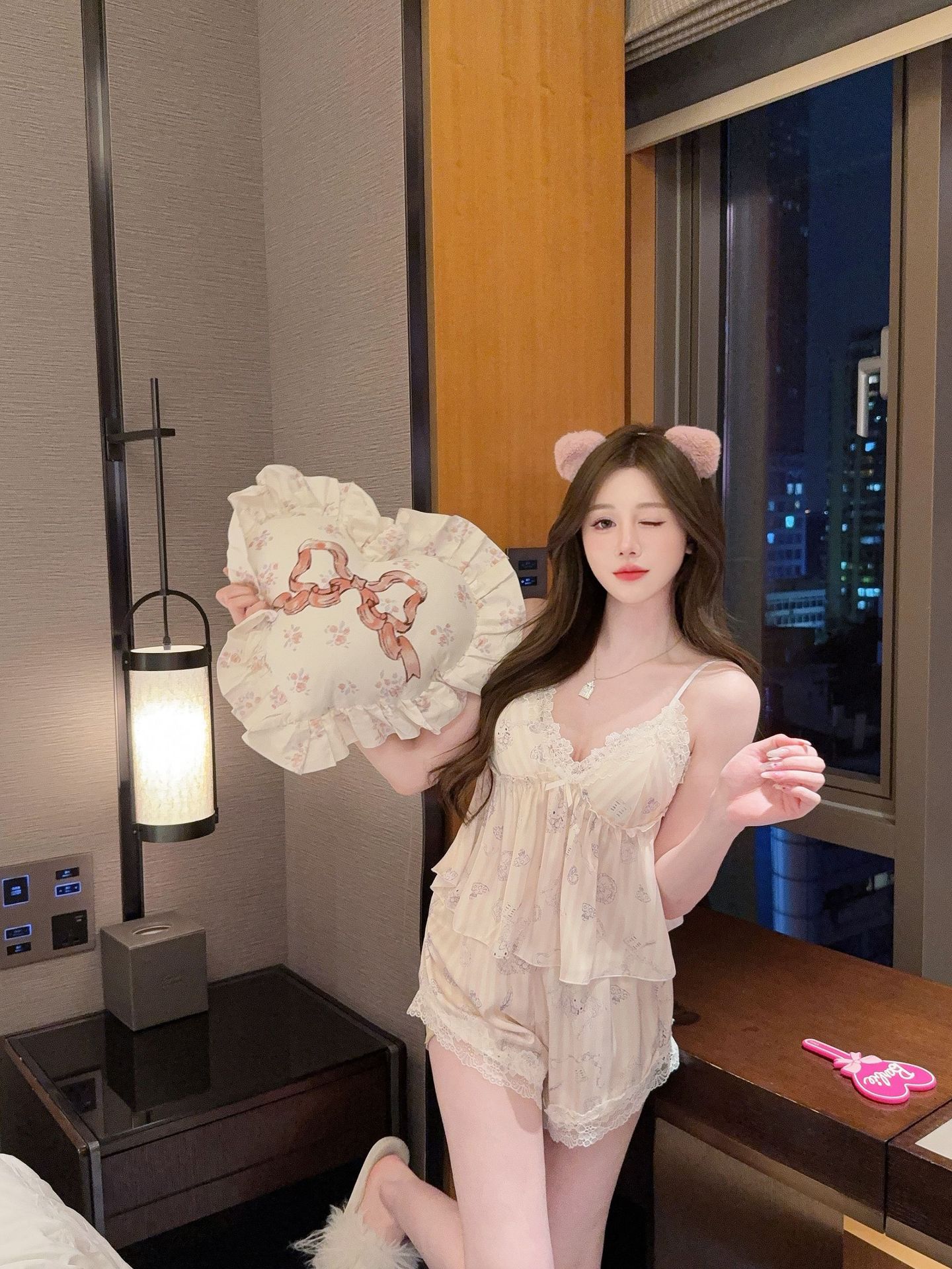 [Gummy Bears] 가슴 패드가 있는 여성용 귀여운 만화 곰 서스펜더 반바지 잠옷 여름 시원한 홈웨어 얇은스토어 가기