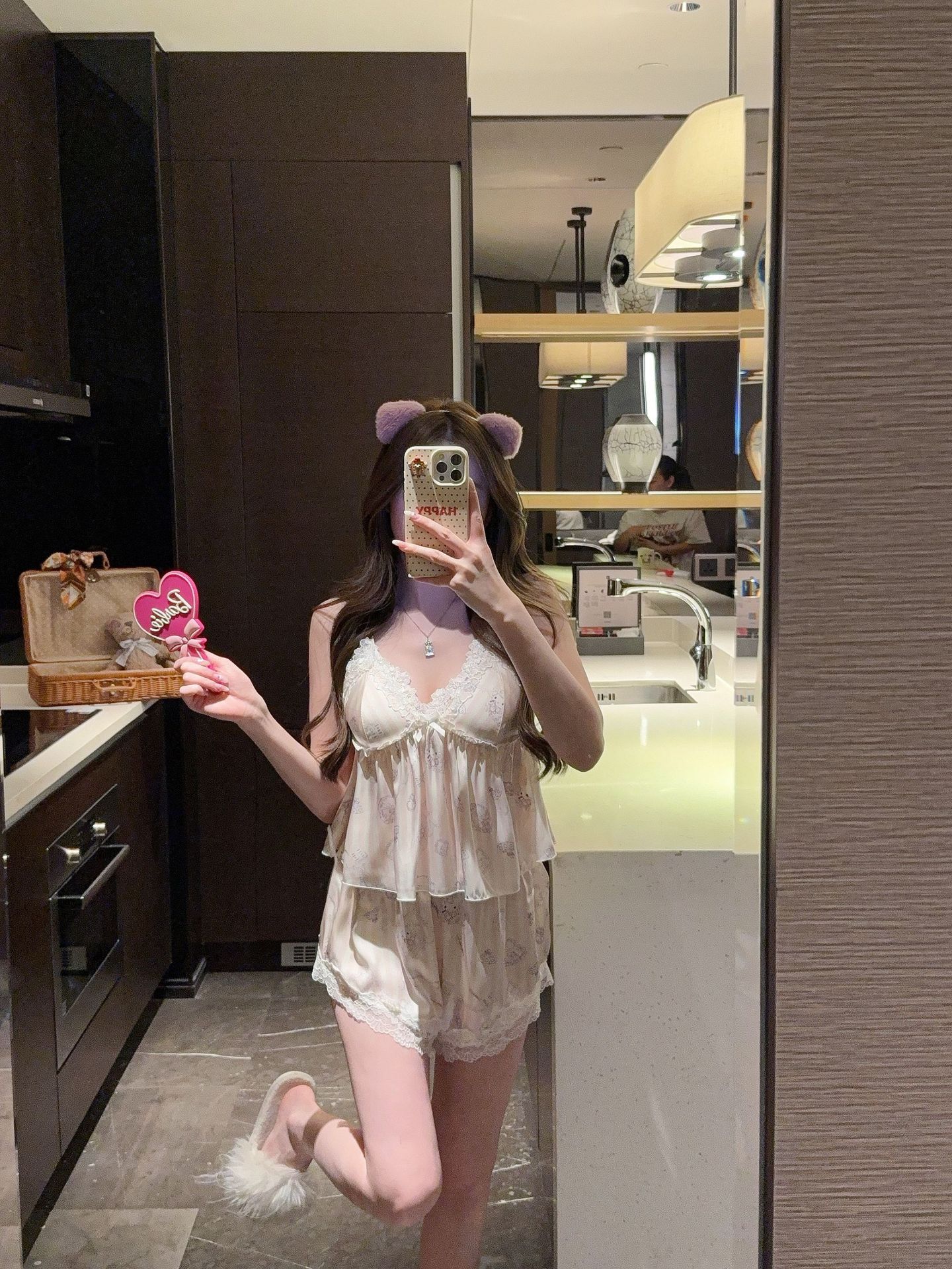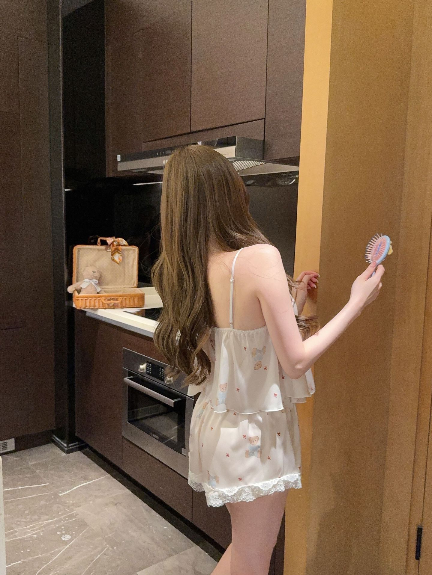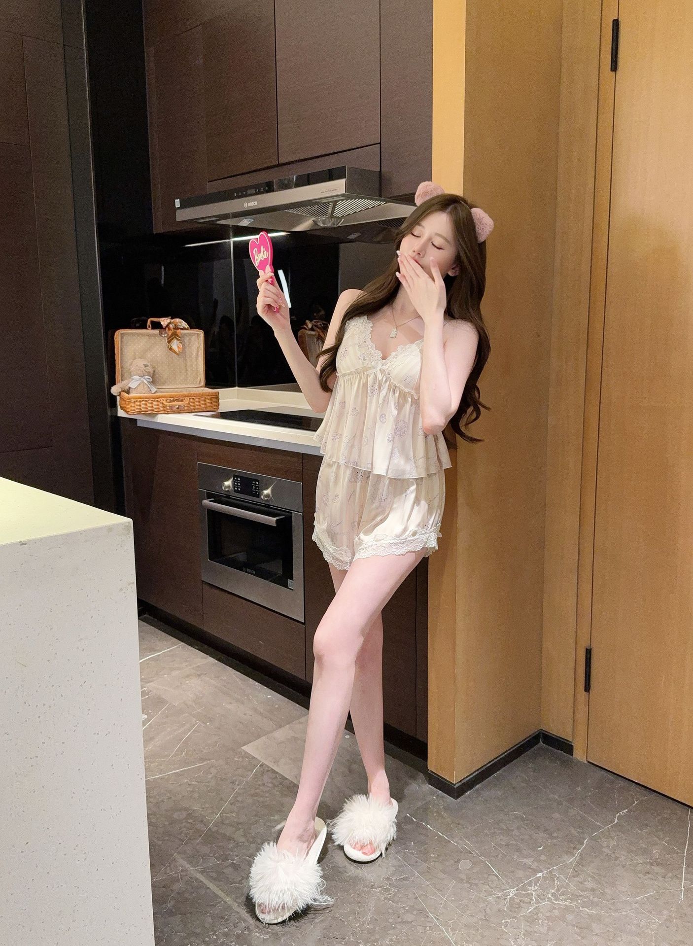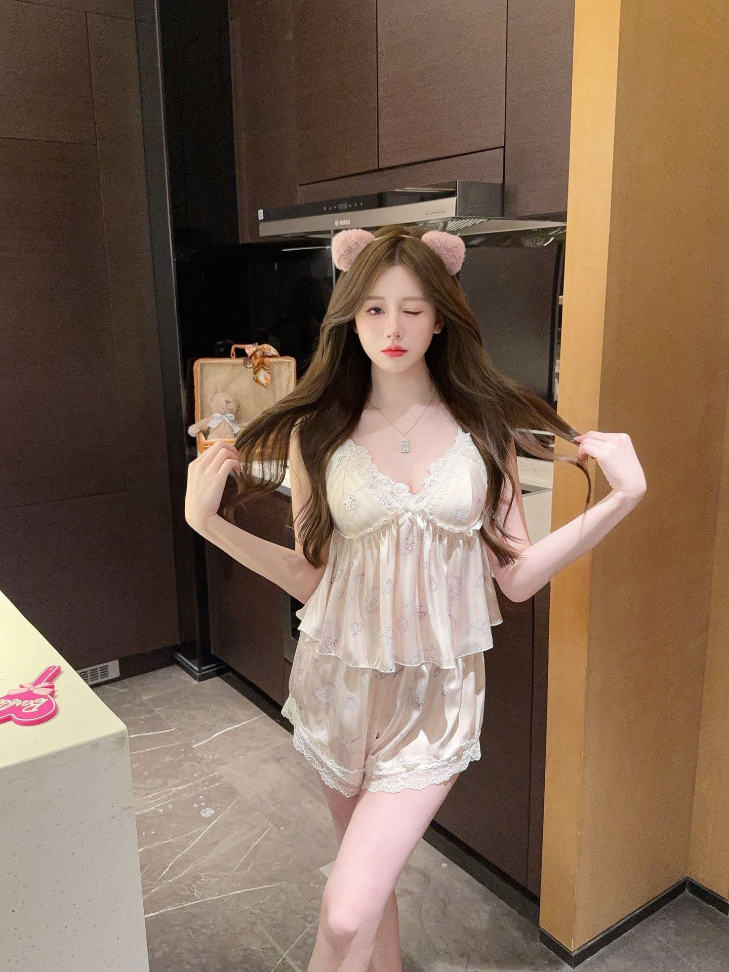 [Gummy Bears] 가슴 패드가 있는 여성용 귀여운 만화 곰 서스펜더 반바지 잠옷 여름 시원한 홈웨어 얇은스토어 가기