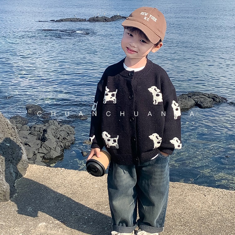 아동용 스웨터 소년 니트 카디건 재킷 2024 새로운 아동용 봄, 가을 의류 소년 유행 베이비 탑 유행스토어 가기