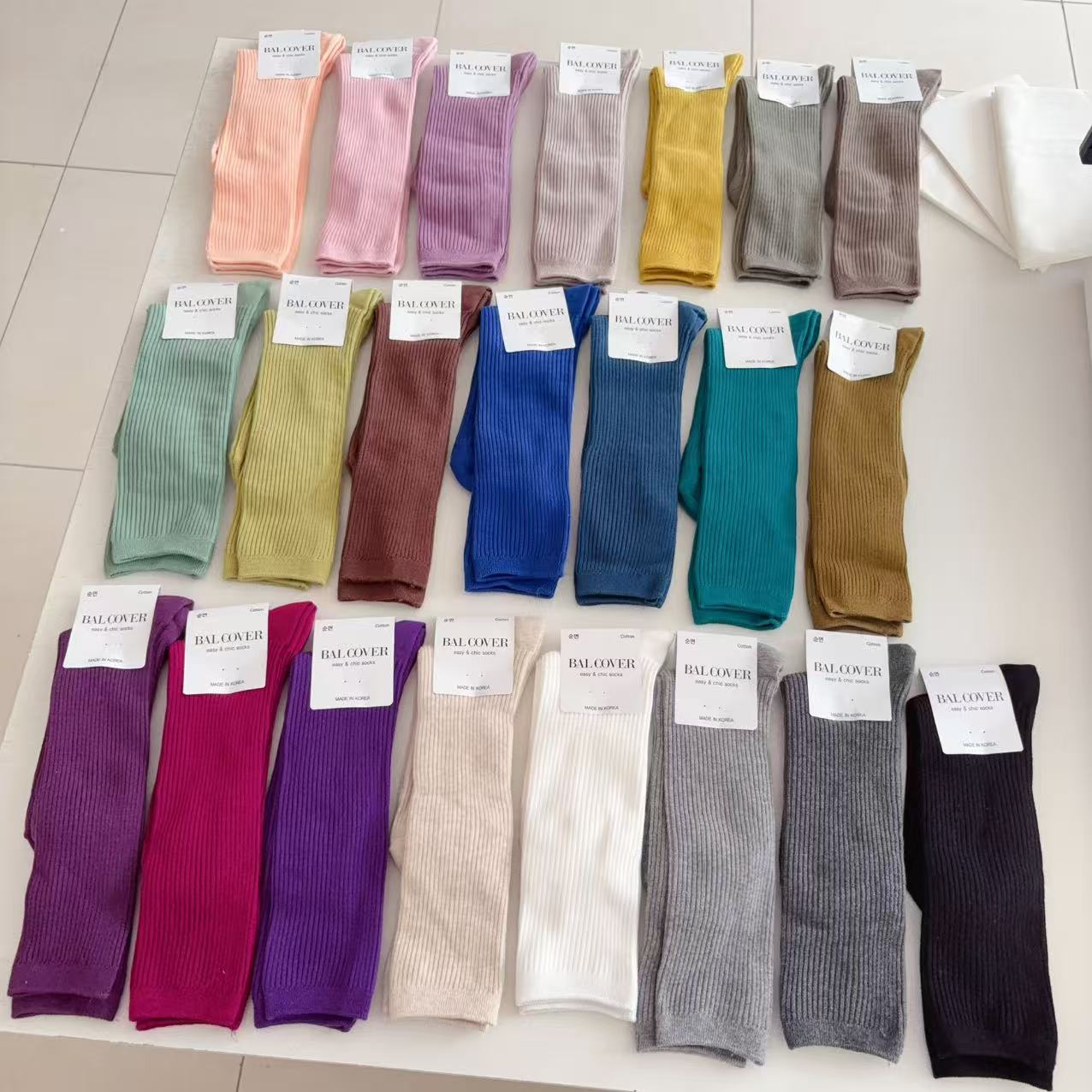 한국 동대문 레트로 릴렉스 발코버 양말 여성용 사계절 화이트 미드 종아리 양말 일본식 파일 양말