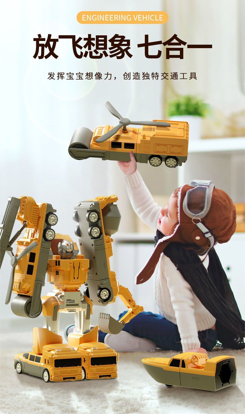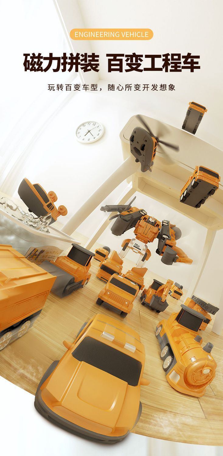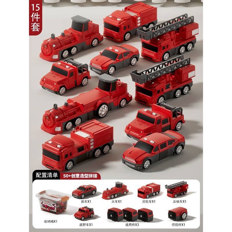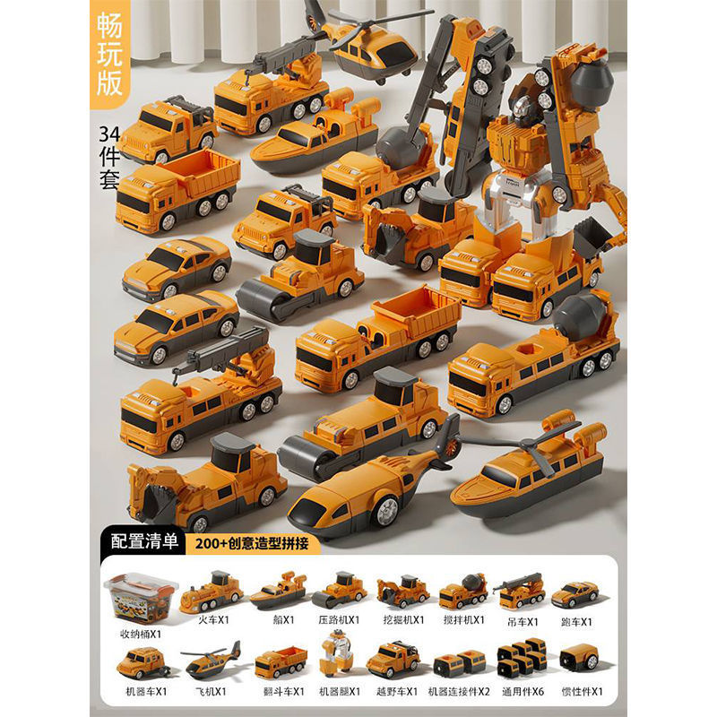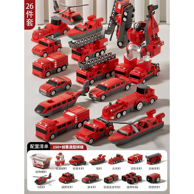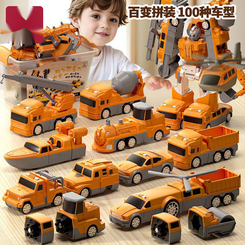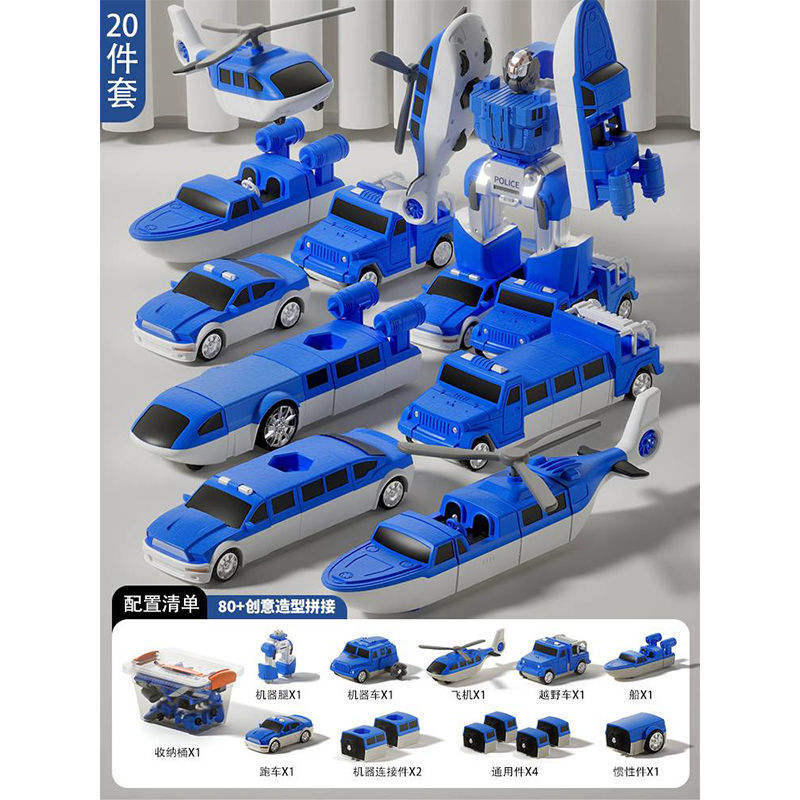 어린이 변형 로봇 자기 장난감 조립 빌딩 블록 소방 경찰차 엔지니어링 차량 세트 소년스토어 가기