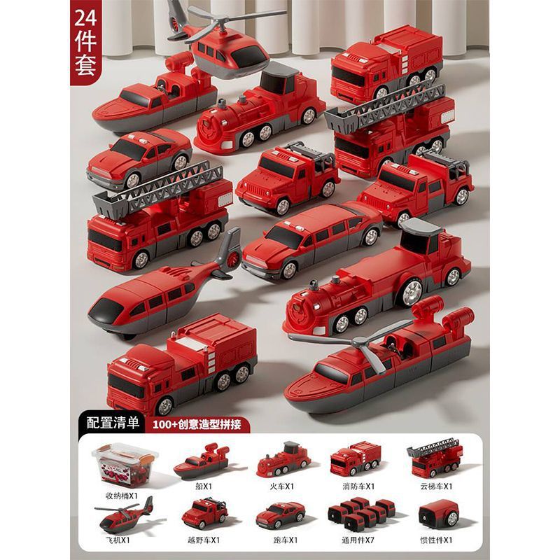 어린이 변형 로봇 자기 장난감 조립 빌딩 블록 소방 경찰차 엔지니어링 차량 세트 소년
