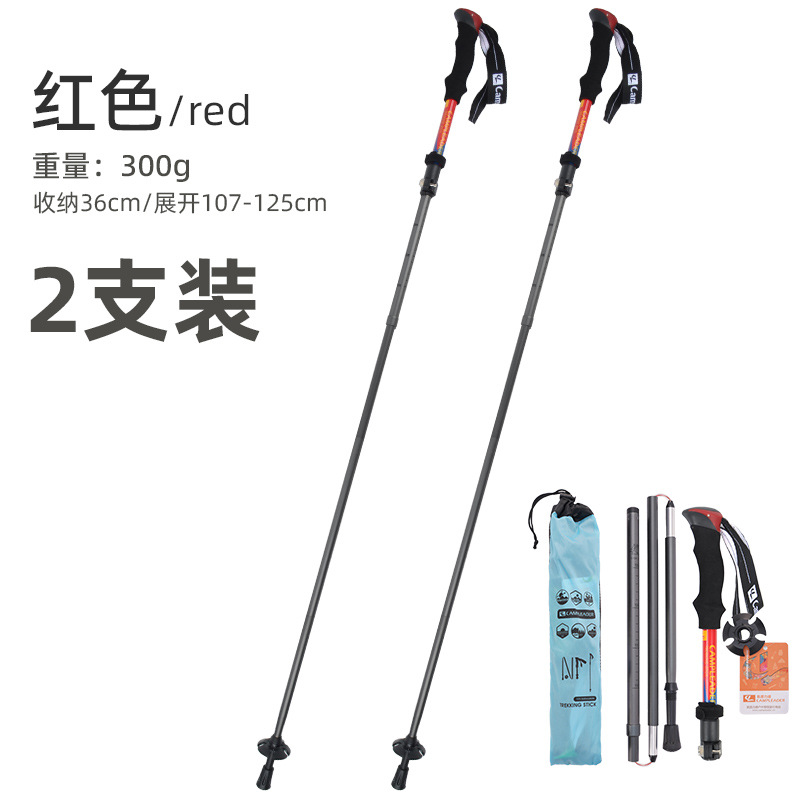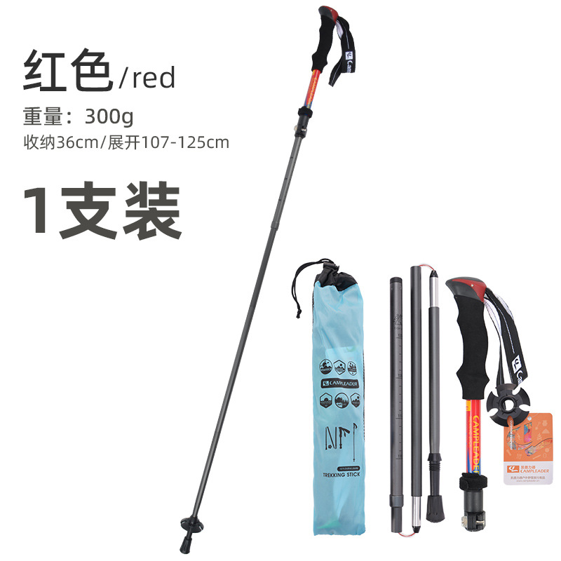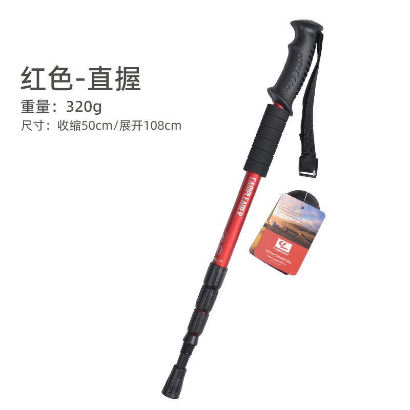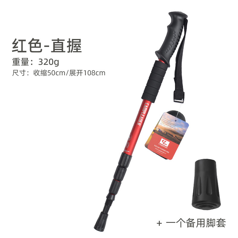 • 빨간색 직선형 4섹션 트레킹 폴 + 예비 원형 발 덮개 1개