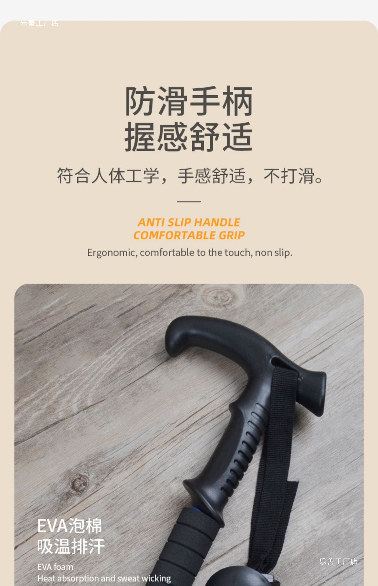Leshan 야외 여행 등산 지팡이 노인을위한 개폐식 지팡이 등산 지팡이 알루미늄 합금 트레킹 지팡이 4 섹션 스노우