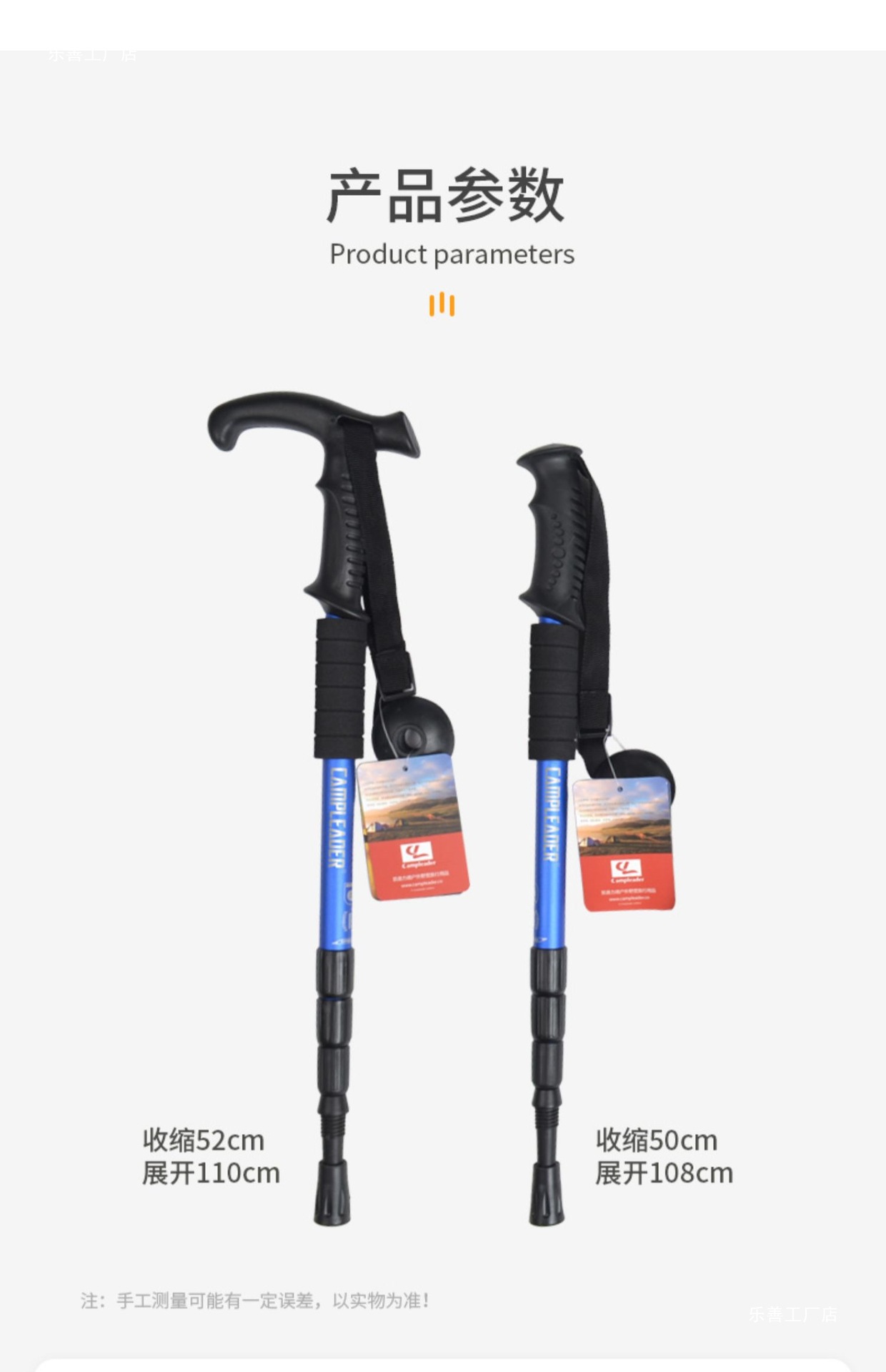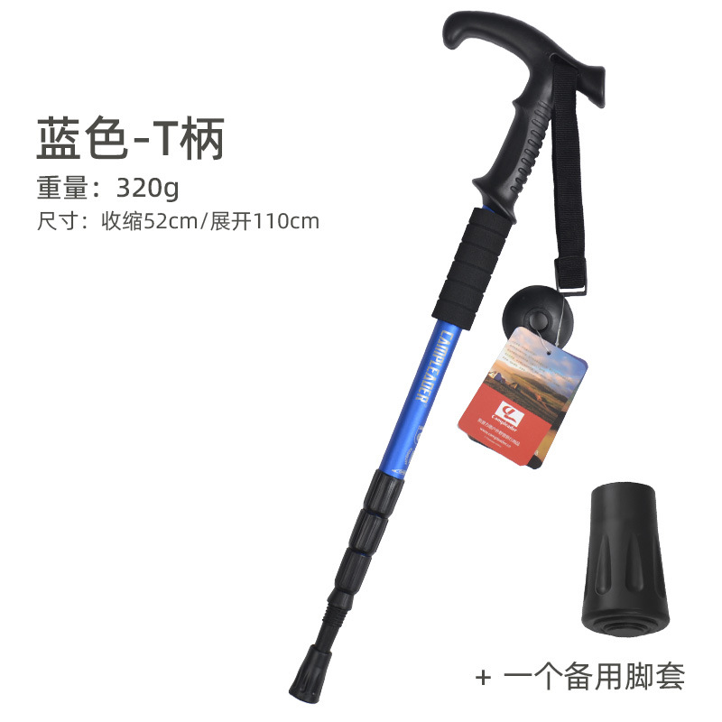 • 파란색 T자형 손잡이 4섹션(양손잡이용) 트레킹 폴 + 예비 원형 발 덮개 1개