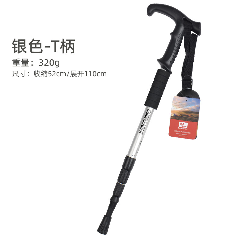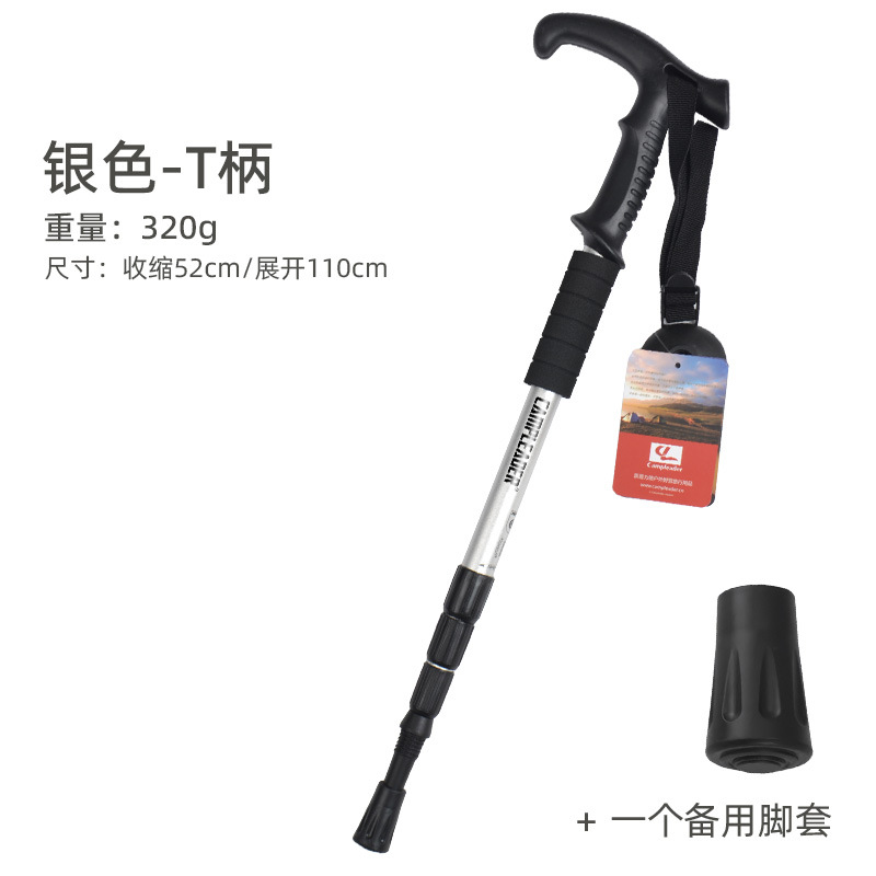 • 실버 T 핸들 4섹션(양손 핸들) 트레킹 폴 + 예비 원형 풋 커버 1개