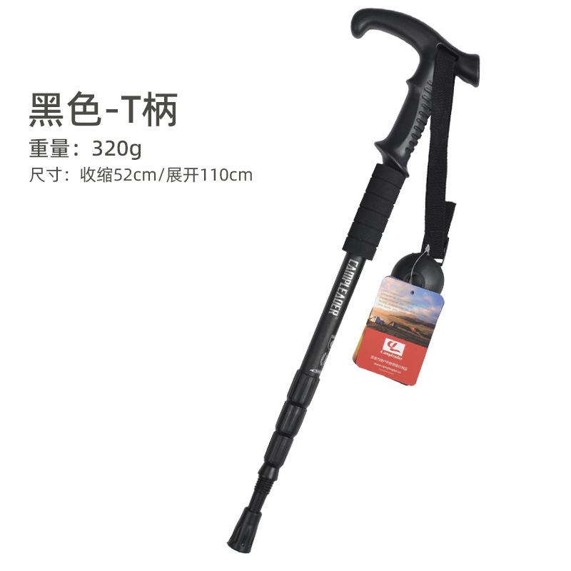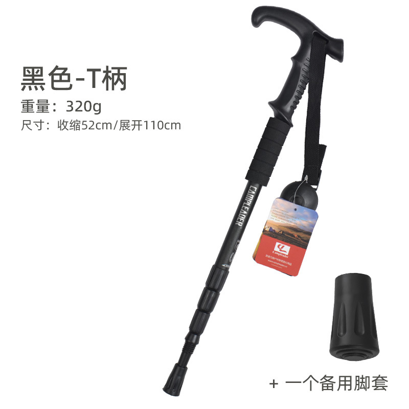 • 검정색 T자형 손잡이 4섹션(양손잡이용) 트레킹 폴 + 예비 원형 발 덮개 1개