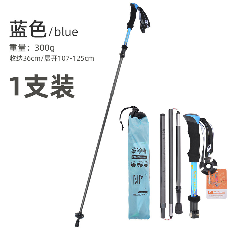 • 파란색 직선형 4섹션 트레킹 폴 + 예비 원형 발 덮개 1개
