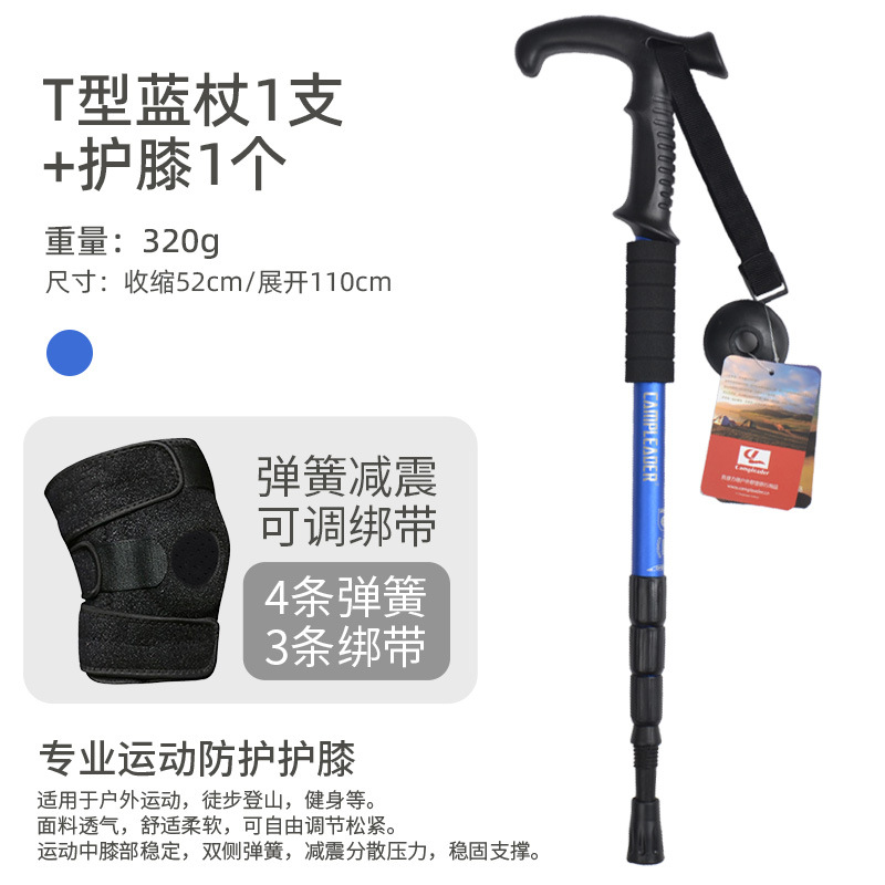 • T자형 손잡이 트레킹 폴 1개(색상에 대한 메시지를 남길 수 있음, 기본적으로 파란색) + 검정색 무릎 패드 1개