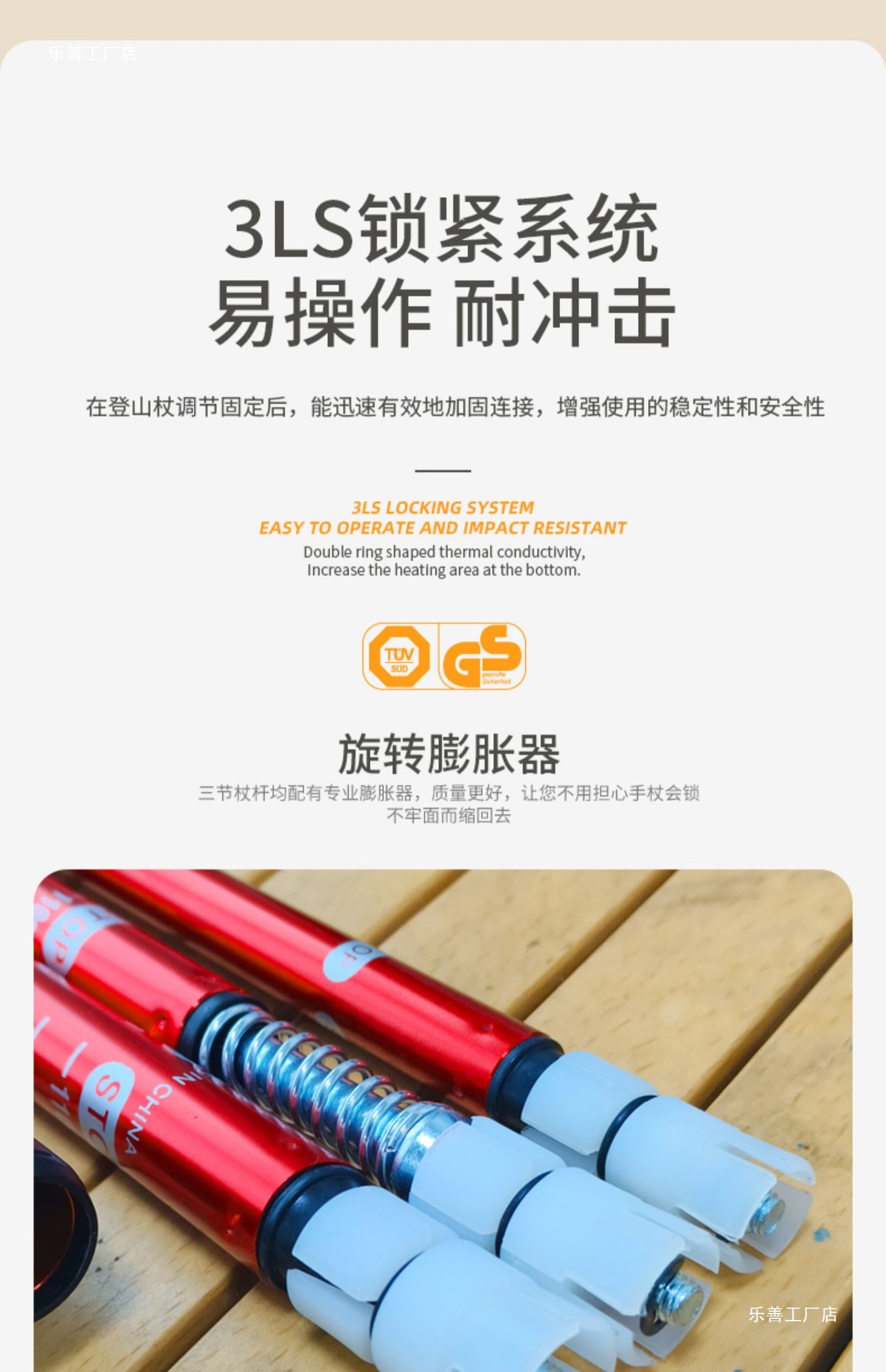 • 레드-T 핸들 4섹션(양손잡이 핸들) 트레킹 폴