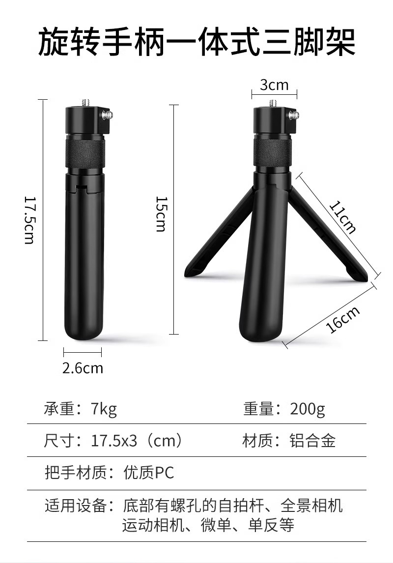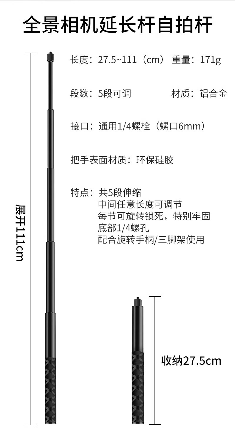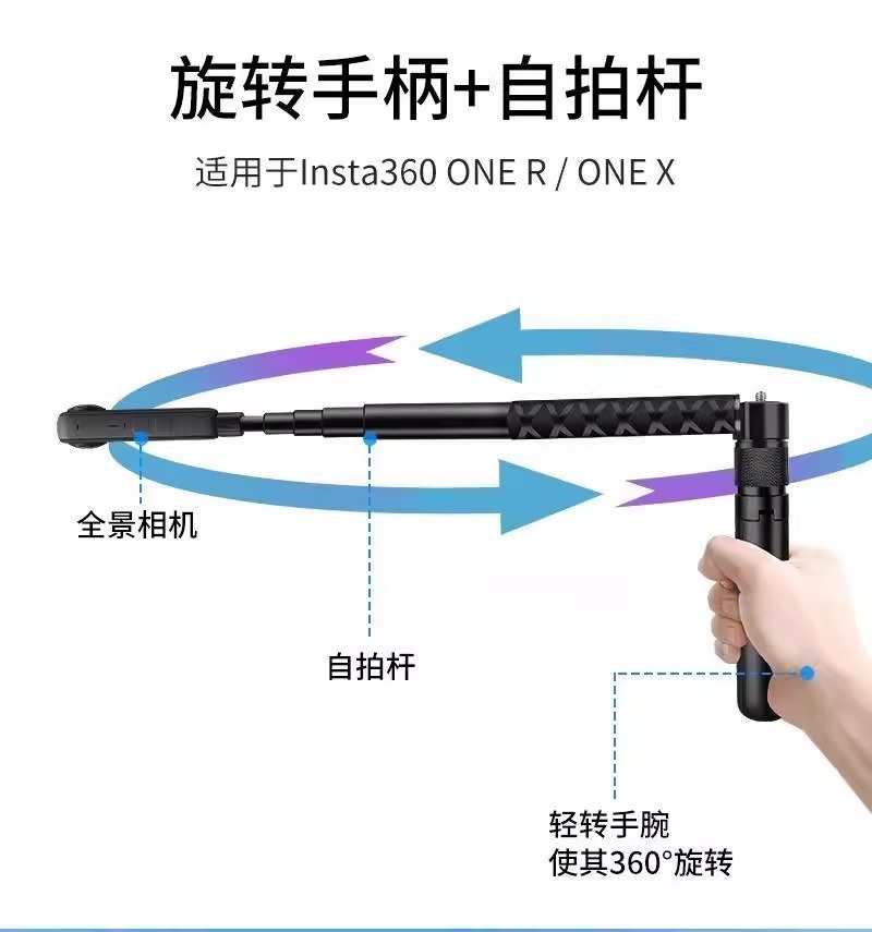 Shadowstone Insta360X5/X4/X3에 적합 보이지 않는 셀카봉 총알 시간 회전 핸들 텔레스코픽 연장 막대