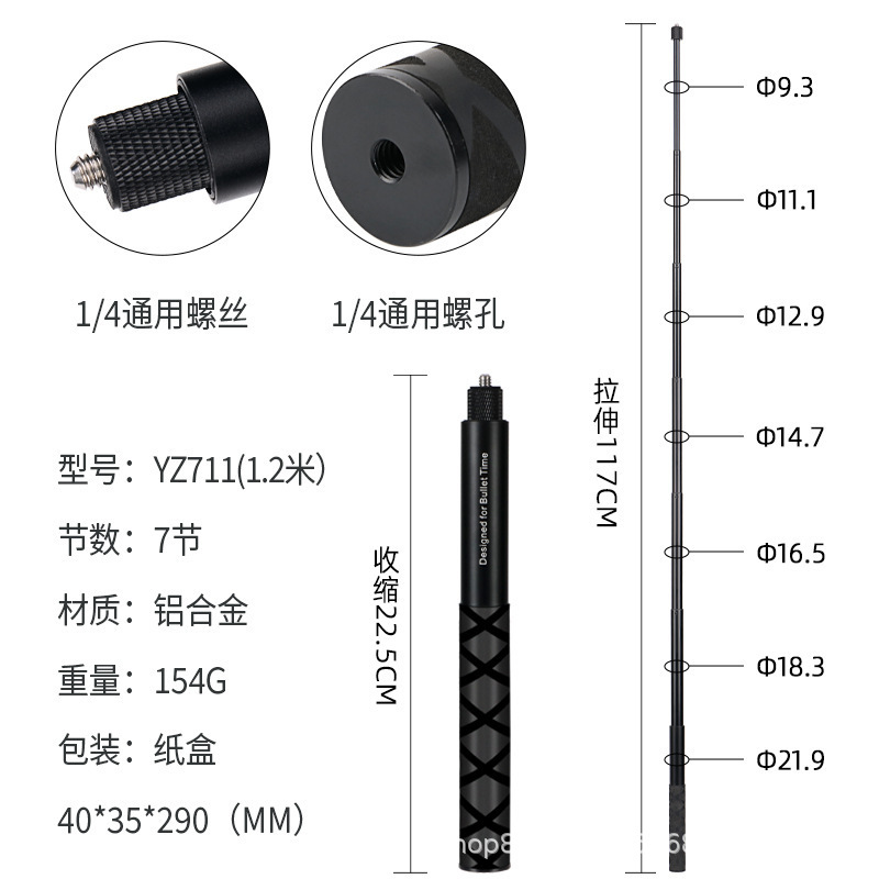 • 1.5m 탄소섬유 셀카봉(7개 섹션)