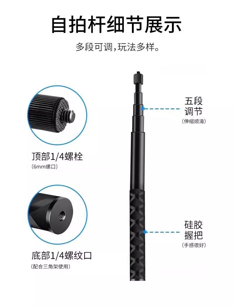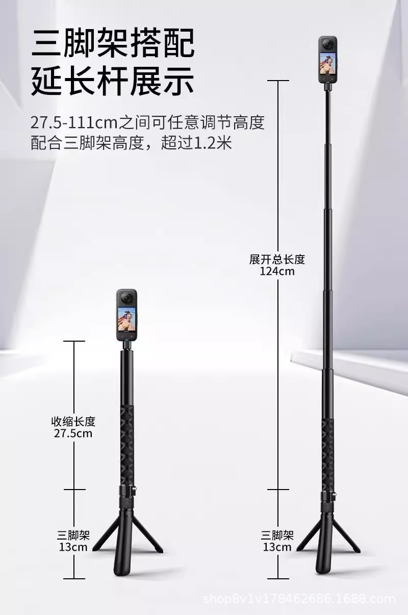 Shadowstone Insta360X5/X4/X3에 적합 보이지 않는 셀카봉 총알 시간 회전 핸들 텔레스코픽 연장 막대스토어 가기