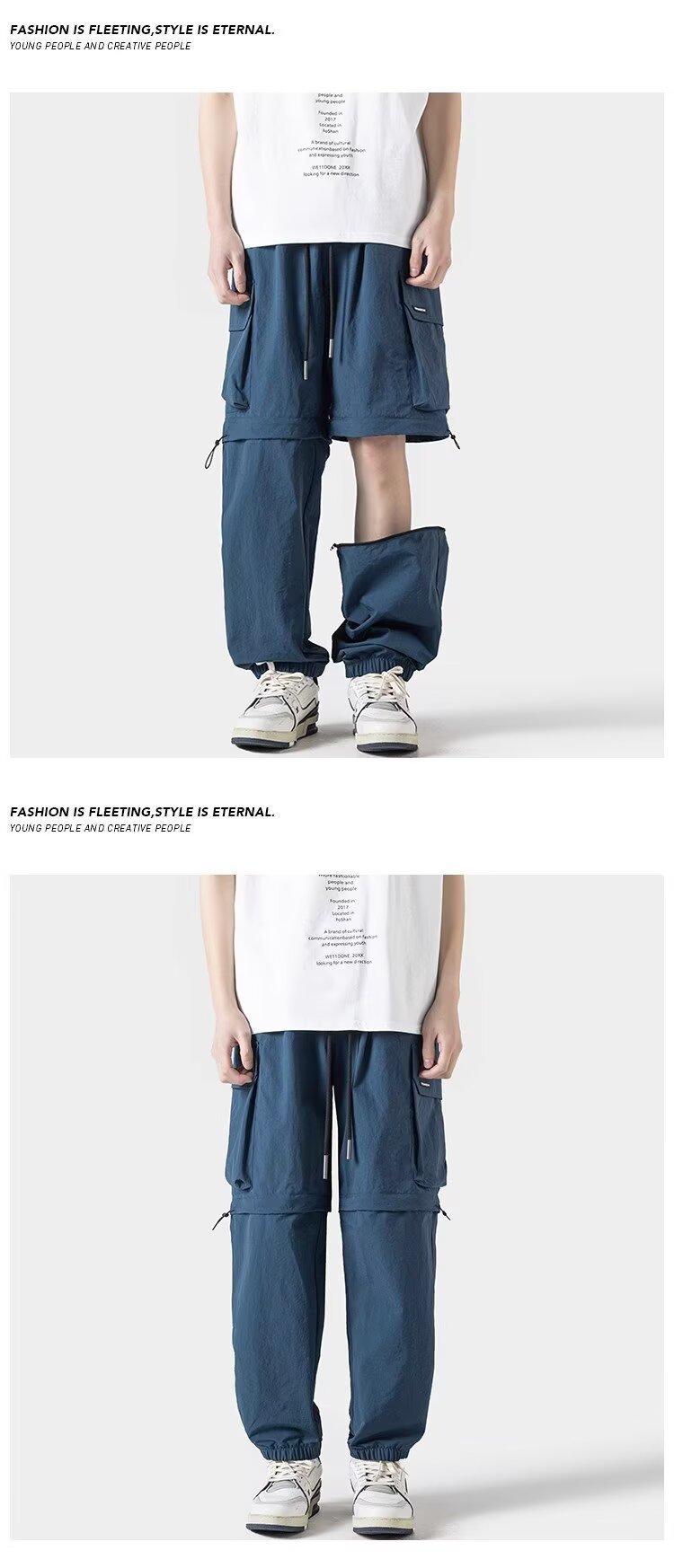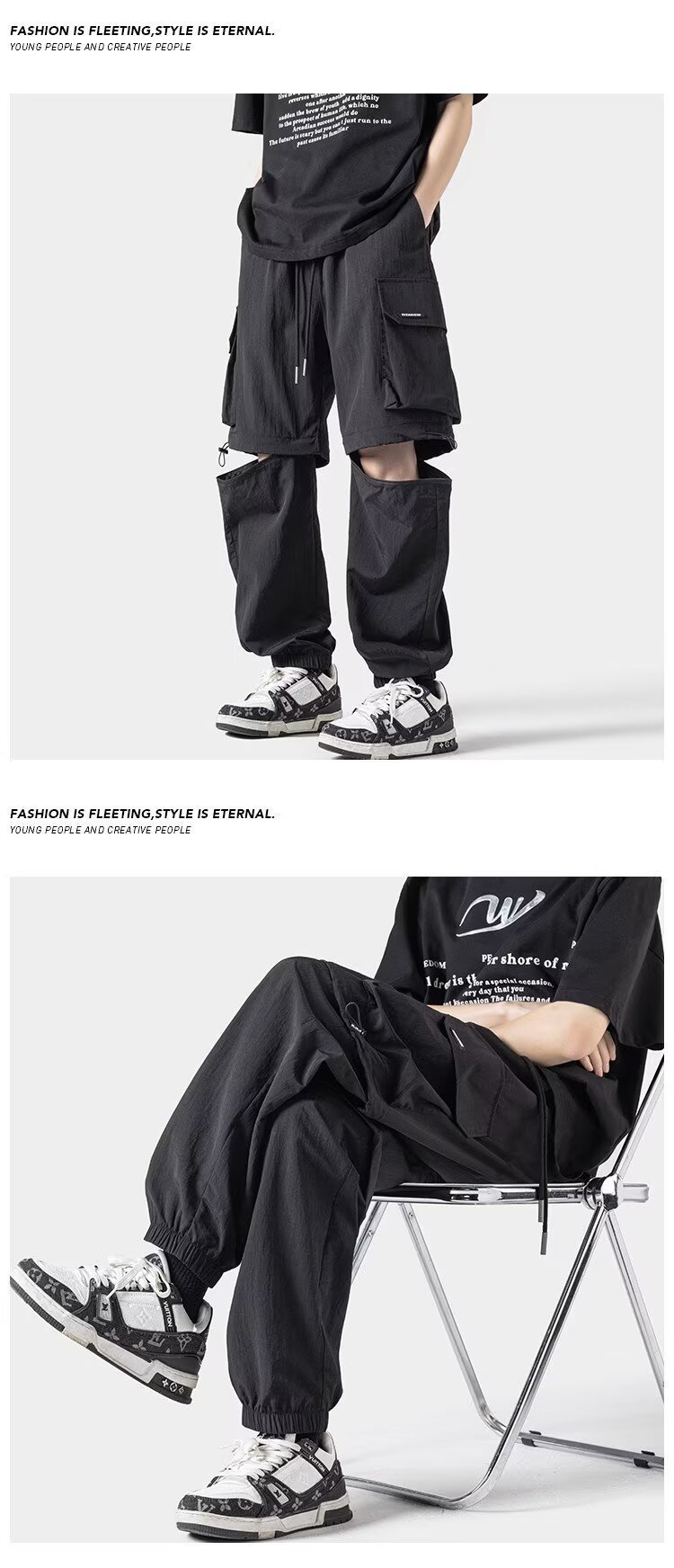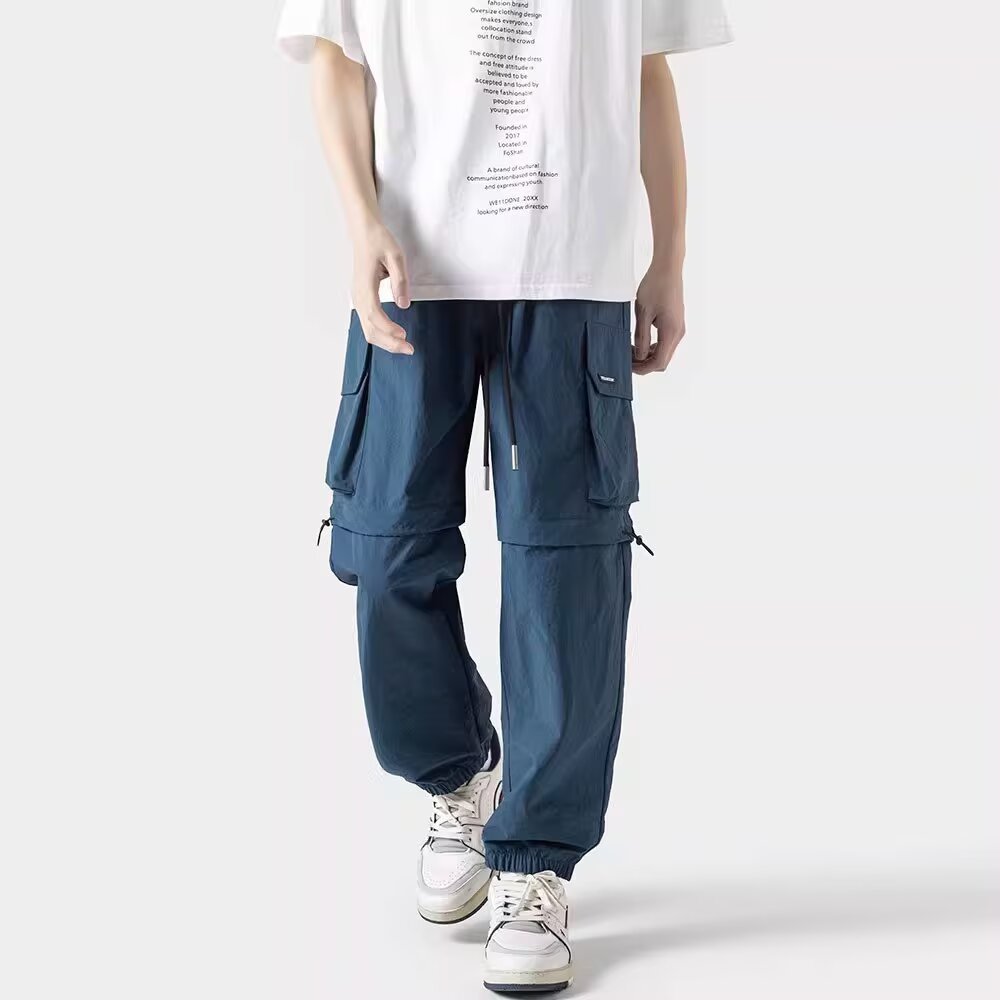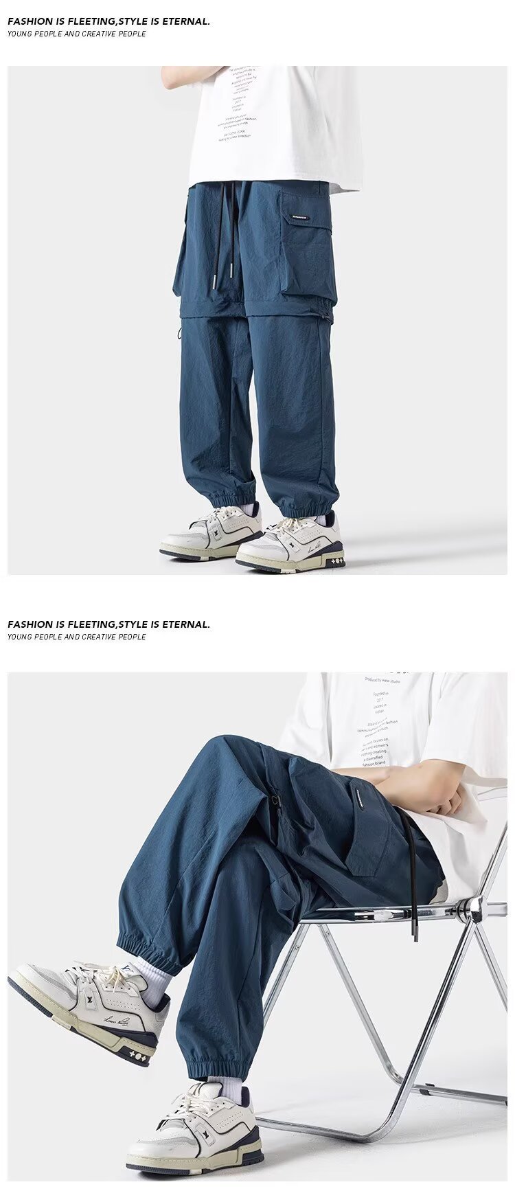 남성용 여름 탈착식 작업복 아이스 실크 바지 2025 얇은 속건성 충전 바지 잘 생긴 느슨한 레깅스 캐주얼 바지스토어 가기
